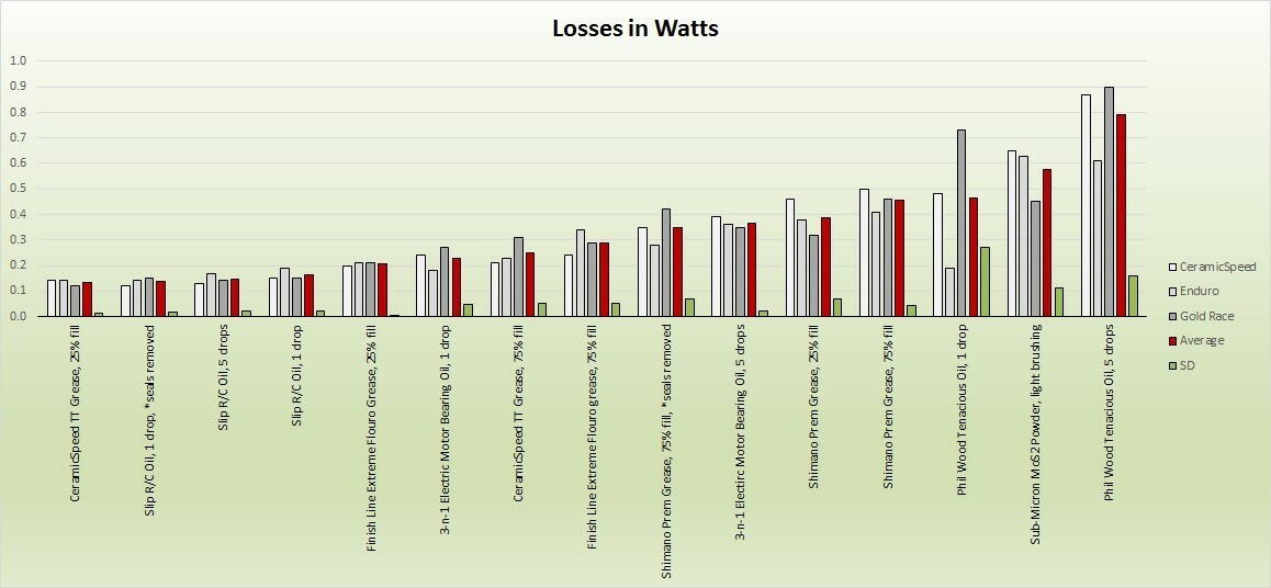 Например, вот таблица потерь в зависимости от смазки и подшипников в каретке. Так что разница есть, можно ли её почувствовать — вряд ли.