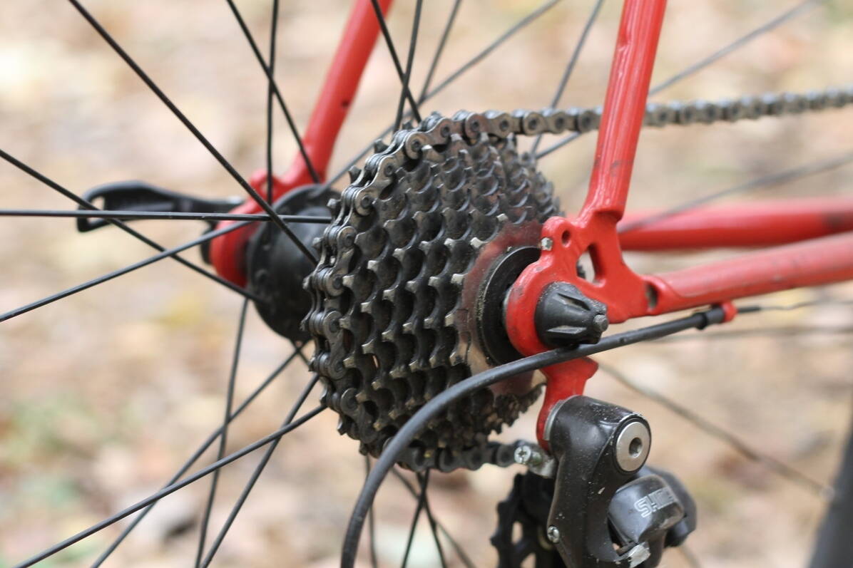 Сегодня выровнял заднее колесо. Снял с левой части оси колеса проставку толщиной 7 мм. Вместо нее поставил шайбу толщиной 2мм. С правой стороны поставил 2 шайбы по 2мм. Колесо встало ровно по отношению к подседельной трубе рамы. Маленькая звезда кассеты стала работоспособной, цепь теперь не трет о перо рамы. Посадочное место колеса уменьшилось на 1мм, его стало легче вставлять в дропы.