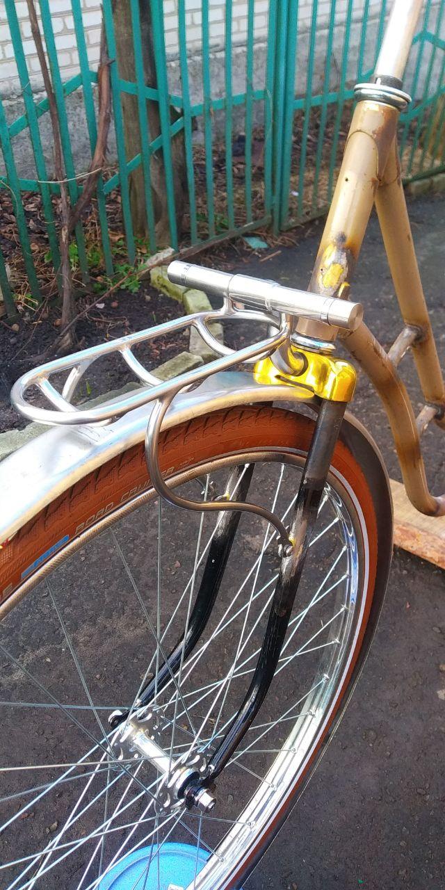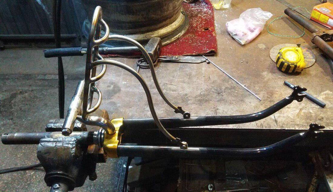 4. Варим/паяем передний багажник. "Уши" креплений на вилку напаиваем уже приложив багажник, собранный на прихватках, иначе не угадать их положение:
