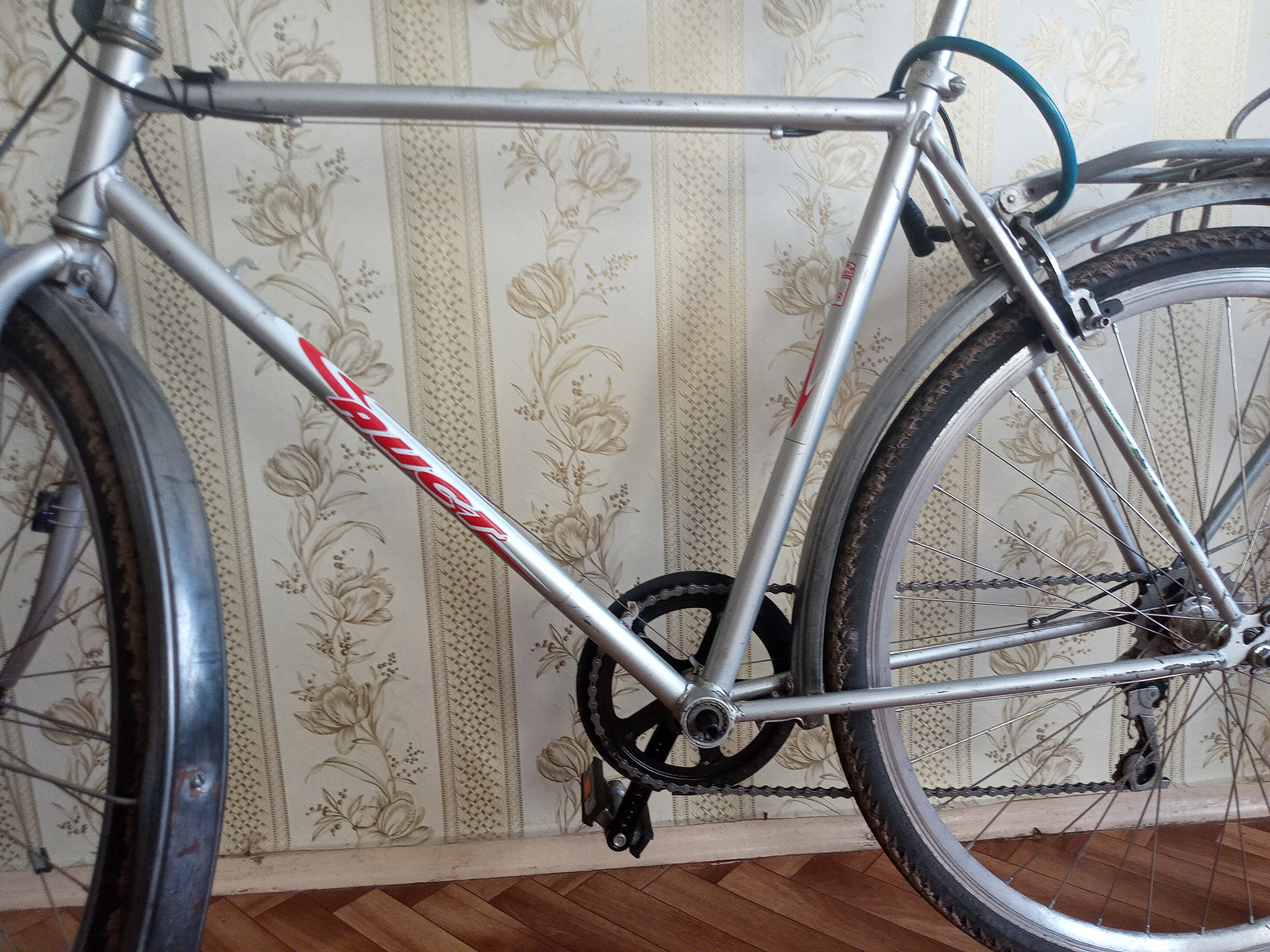 Получил односкоростной старт шоссе в-555 с задней втулкой по типу украины, трехлапкой, звездой 53 спереди 21 сзади, с почти нулевым выносом руля. посадка почти вертикальная. на базаре купил руль баран+вынос от спутник-туриста. отдал в порошок.