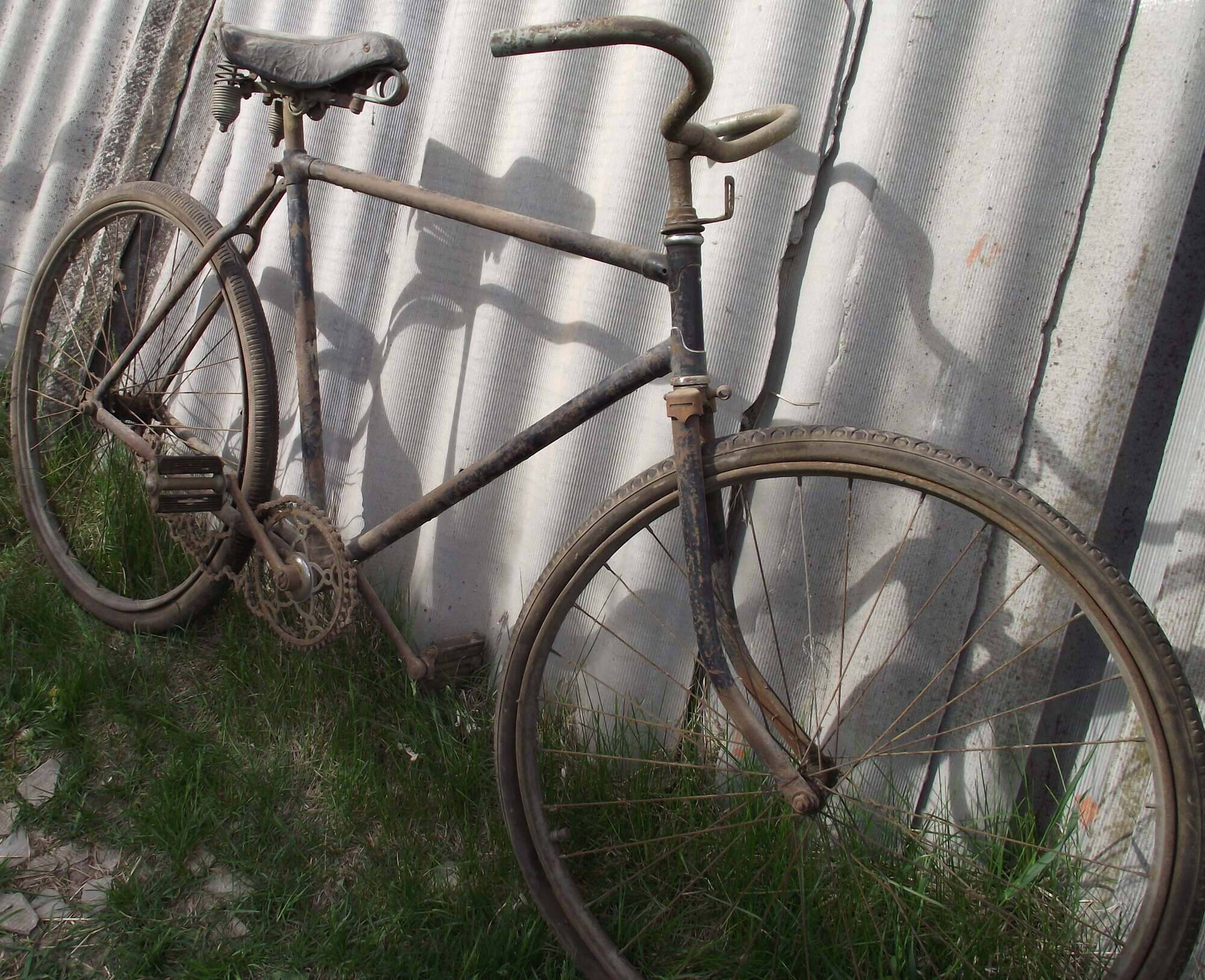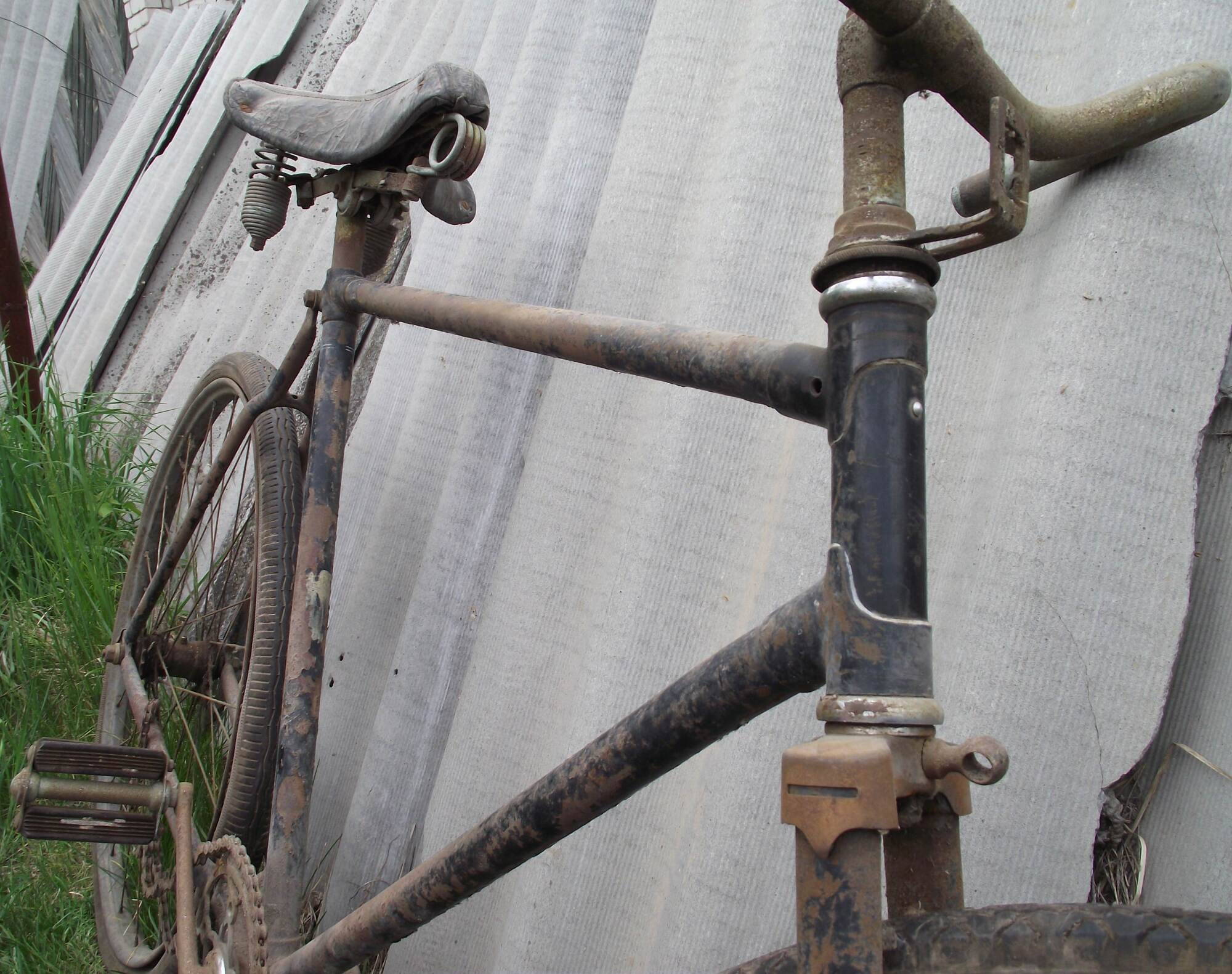 Добрый день! Очень нужен совет по моему наследству. Мне понятно, что это Пенза,10В, но непонятен год и, следовательно, какой шильдик нужен этой штуке. Заднее колесо и переднее крыло не родные. Надписи на раме расчищал шабером от заборной краски,очень похож рисунок на наклонной трубе на юбилейный окрас к 100-летию Ленина из форума. Номер, вероятно, 10163, хотя две последние цифры очень нечетки.