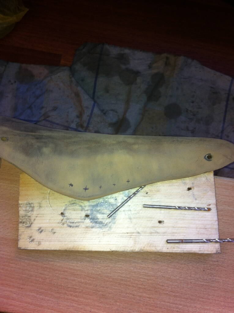 Комментарий к файлу: Из-за отсутствуя под рукой дырокола для кожи высверлил дырочки для шнуровки дрелью.