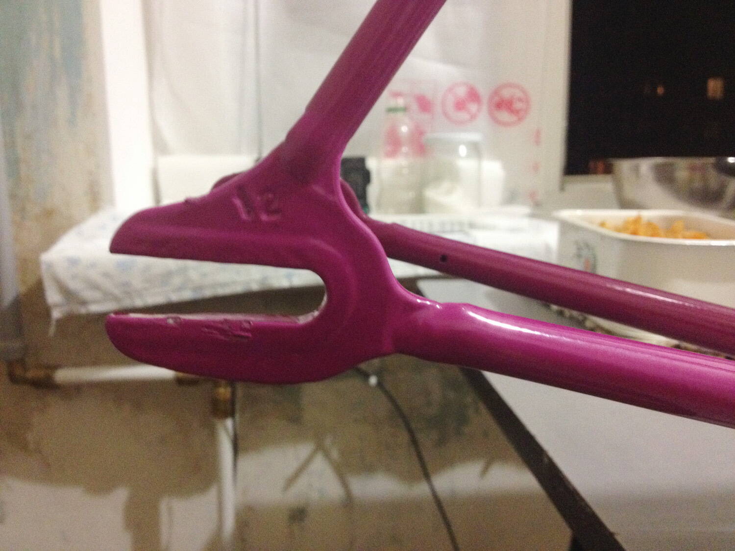 В четверг забрав раму с покраски первое что надо было сделать – вкрутить назад каретку подобрав нужную длину вала. Сказал ему идти к тем же мастерам на Куреневке, чтоб перерезали резьбу, подобрали каретку с нужной длинной, вкрутили, а остальное будем делать дома. Мастера увидев второй раз раму внезапно охренели –дропы на раме оказались в плачевном состоянии.