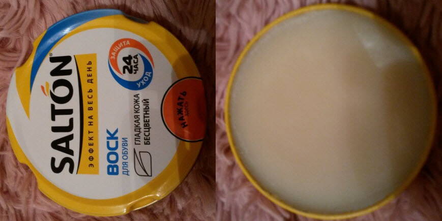 Коробочка чуть другая и на вид мой более желтовато - прозрачный. Еще мог сыграть 1 фактор, я покрывал когда была жара под 30, но зимой обувь тоже мазал руками, он на руках быстро тает, становится, по консистенции, примерно как жидкое мыло. вот фото с инета.