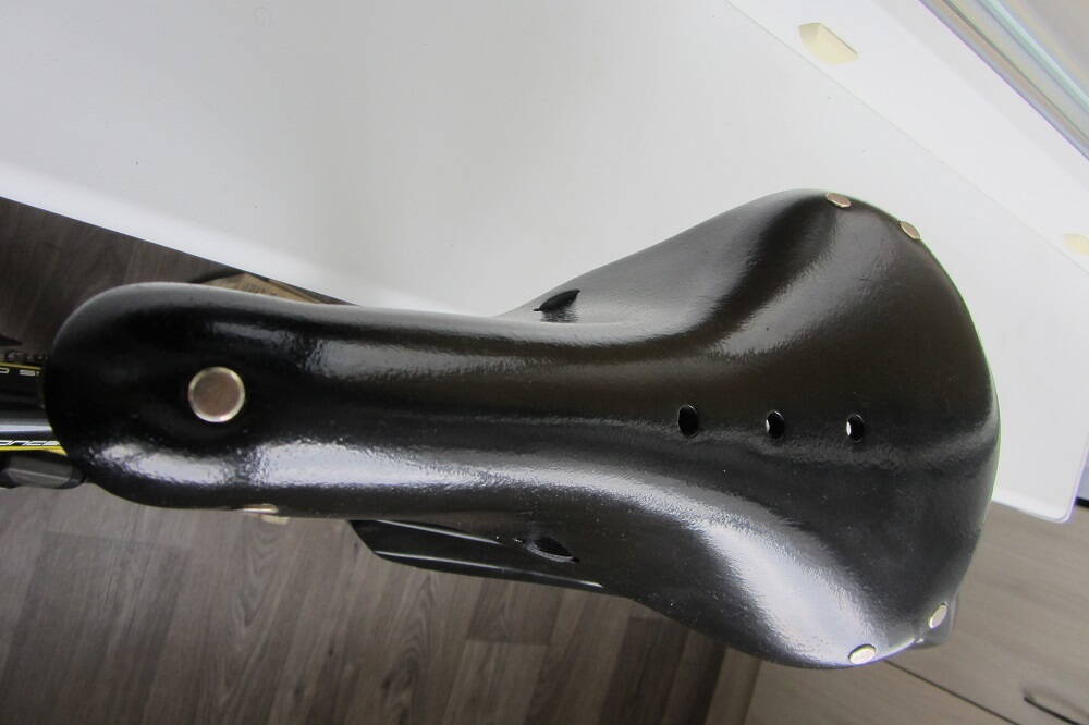 Вторые две фотки:седло покрашено морилкой,но так как вымазало штаны,было перекрашено в поверхностную краску.Вид похуже,но пока краска не берется.