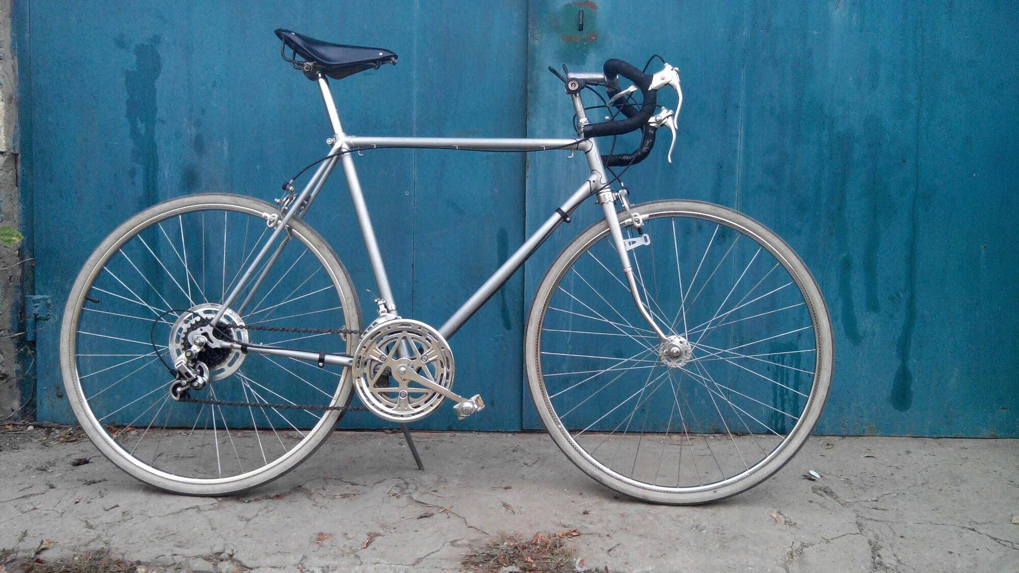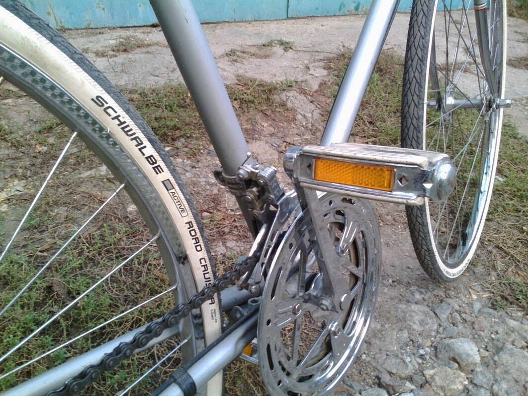 Пару лет назад на олх набрел на велик, понравился изгиб "гитары желтой", то бишь изгиб руля, вел находился кажется в Луцке, немножко поторговались.... И продавец отдал мне его за 2400, так как,по его мнению, на переднем колесе было "яйцо", но на самом деле там была небольшая восьмерка, короче , мне пришел вел немецкой фирмы "epple", с уродливым женским седлом "селле роял" с трещиной, которое до сих пор валяется где-то у меня в гараже. Вместо него я поставил кожаное седло хвз, В общем вел сейчас вглядит так: