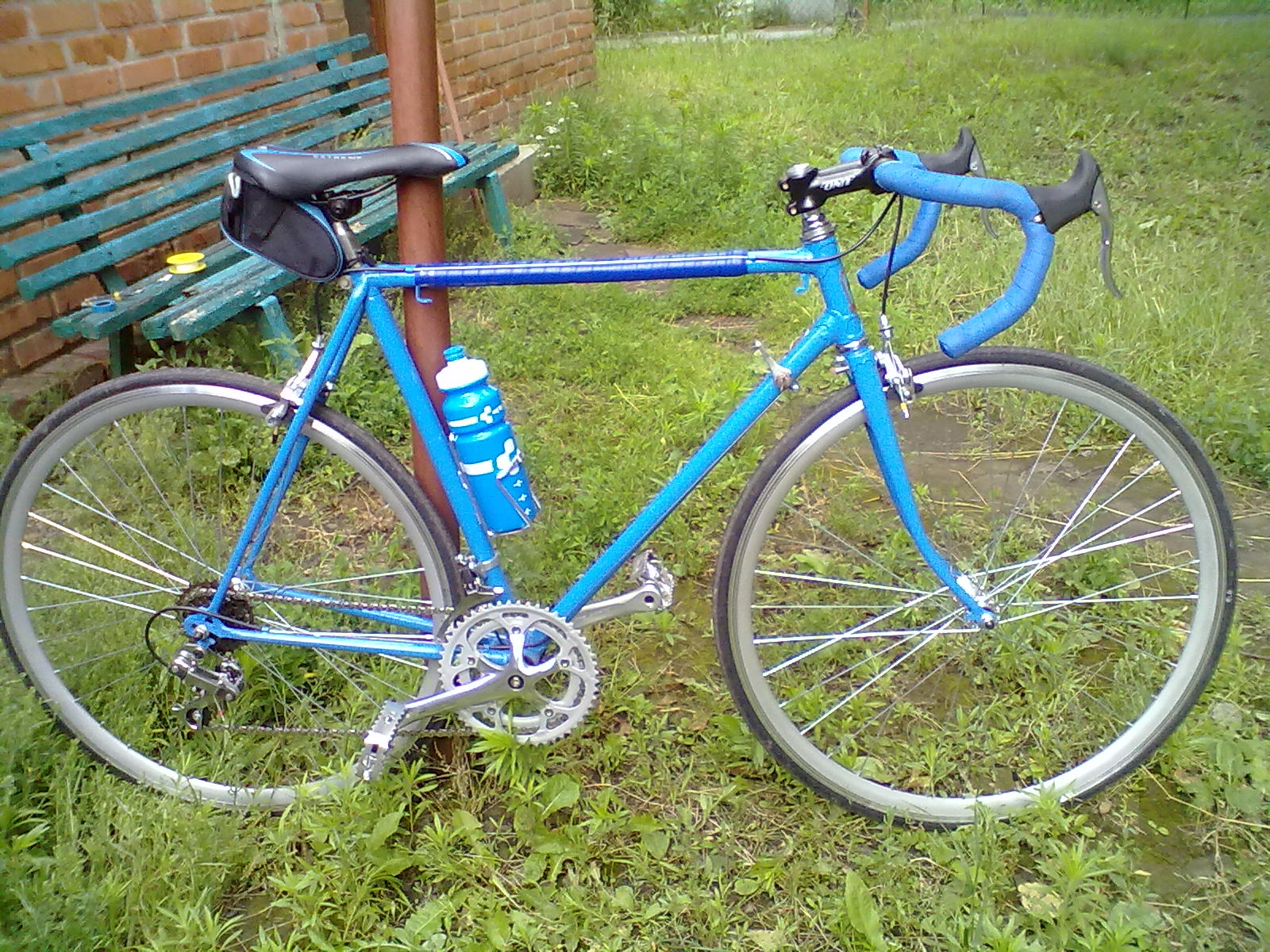 Я хотел, чтоб обмотка на раме и на руле была одного цвета, но когда Серега поехал второй раз за обмоткой, того цвета уже не было. Так что на раме темнее..