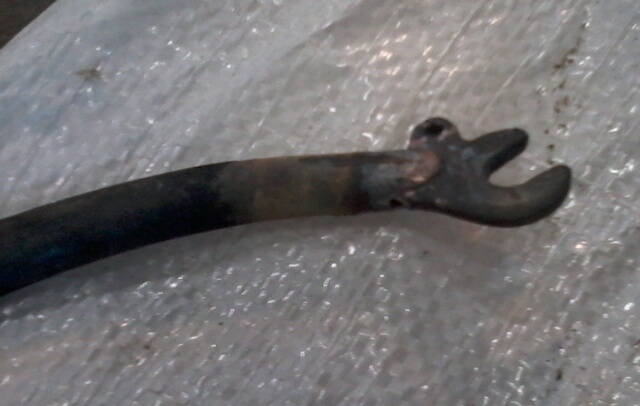 Сегодня пробрался к другу в мастерскую, где зимует мой инструмент, и решил ещё модифицировать вилку. Во-первых, у меня есть итальянский тормоз "Universal", здорово смахивающий на изящный шоссейный Dia-Compe (спасибо, Novater!), но у него маленький рич. А на бюджетном проекте, куда всё это городится, хочется красоты. Во-вторых, вилка от довольно старинного велосипеда и имеет довольно большой вылет, если его несколько уменьшить, вел будет приятнее управляться - лучше держать дорогу. О теории этого дела малосвязный текст и путаные ссылки здесь: http://tourist.kharkov.ua/phpbb/viewtop ... 3#p1457829 .