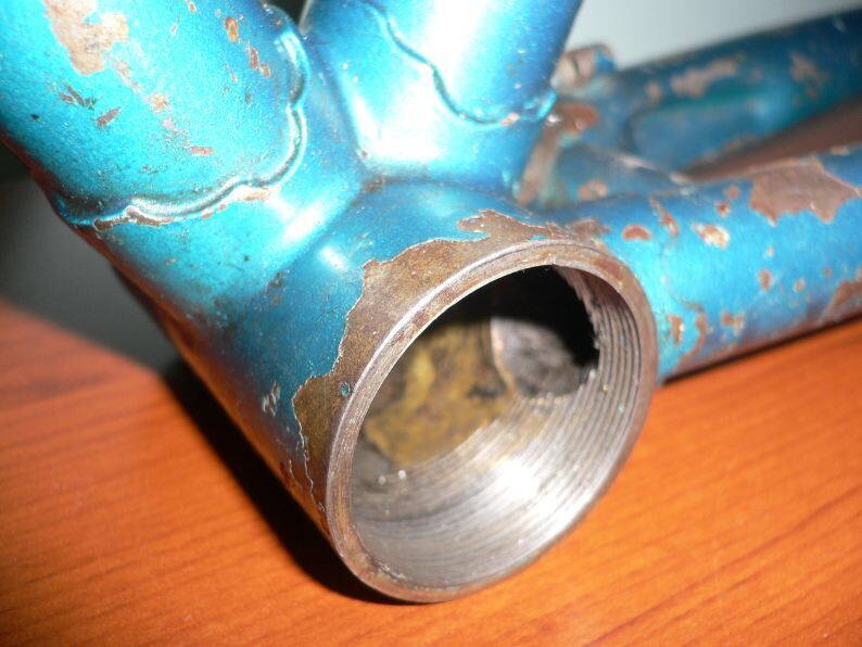 - Начал счищать краску. Обнаружилось, что части рамы спаяны/сварены желтым металлом - не то бронзой, не то латунью (если это может служить отличительной чертой).