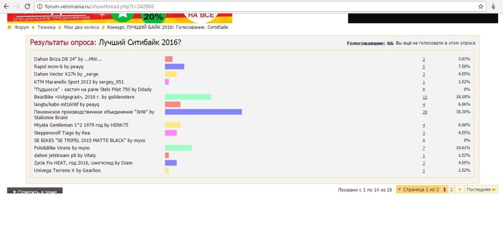Вот голосование в категории Ситибайк http://forum.velomania.ru/showthread.php?t=342866