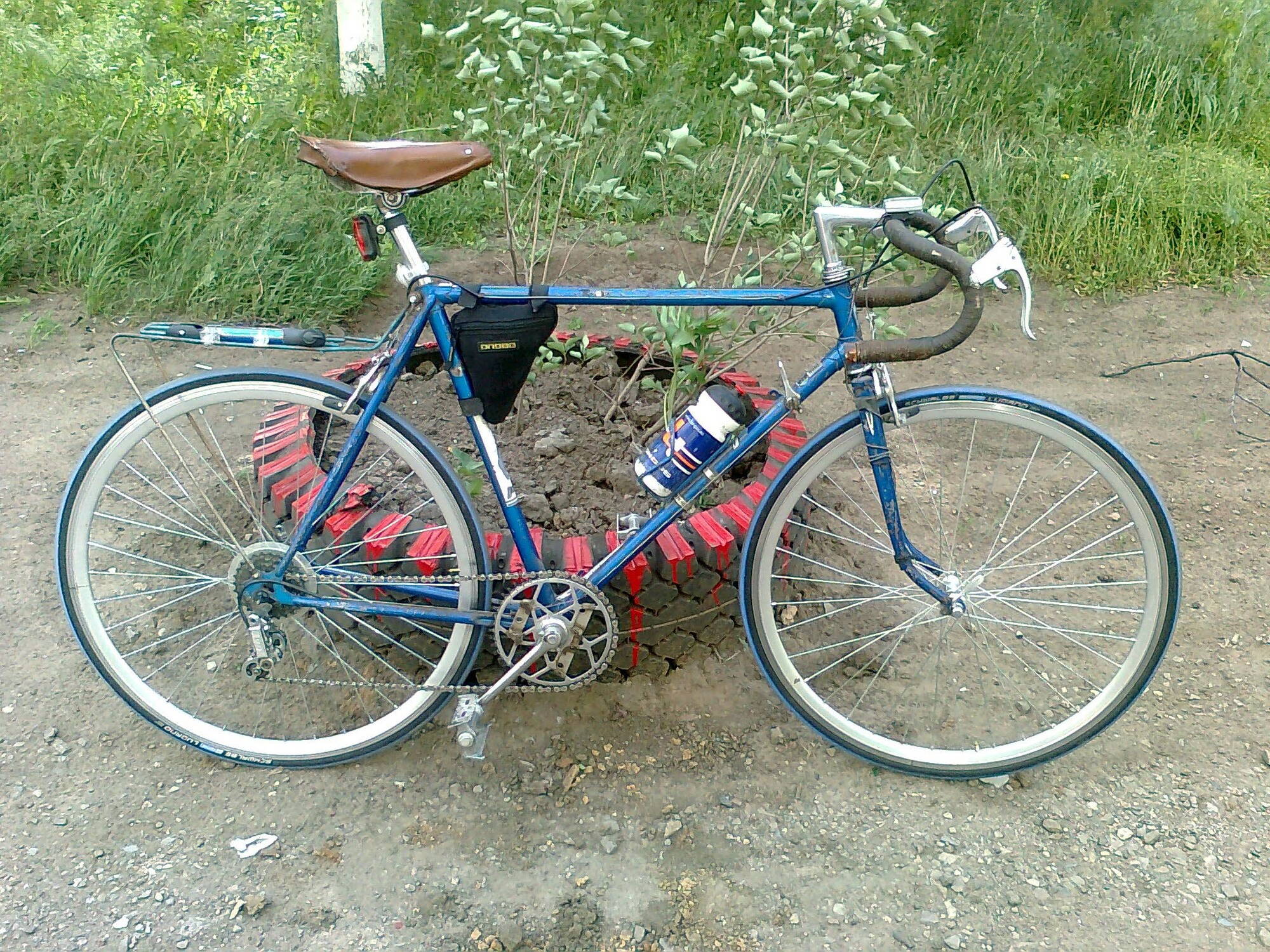 Ну и фото моего дорожника в том виде, который катает со мной всегда и везде (в серой фляге инструменты, насос, в сумке камера, велоаптечка, сигареты).