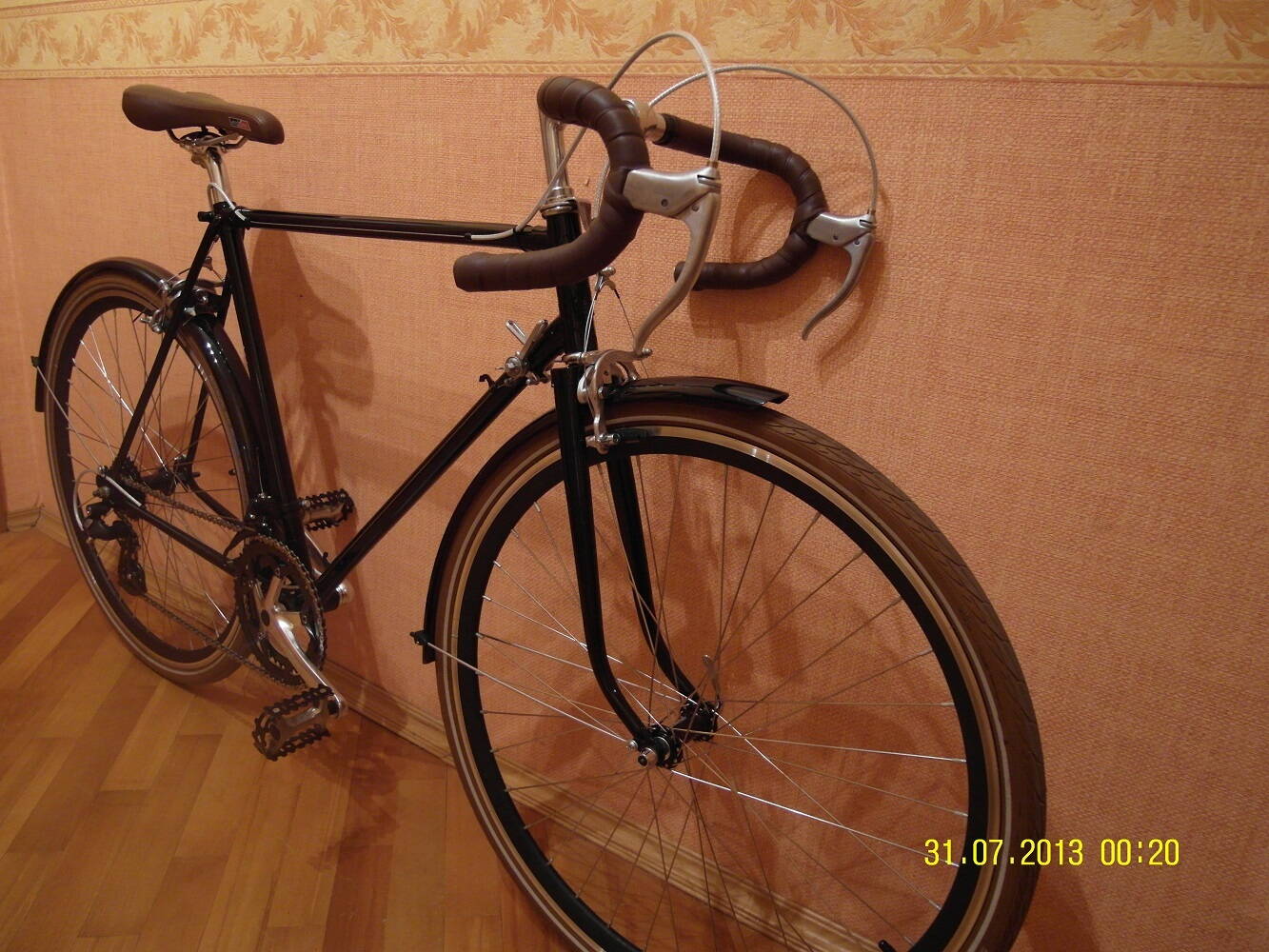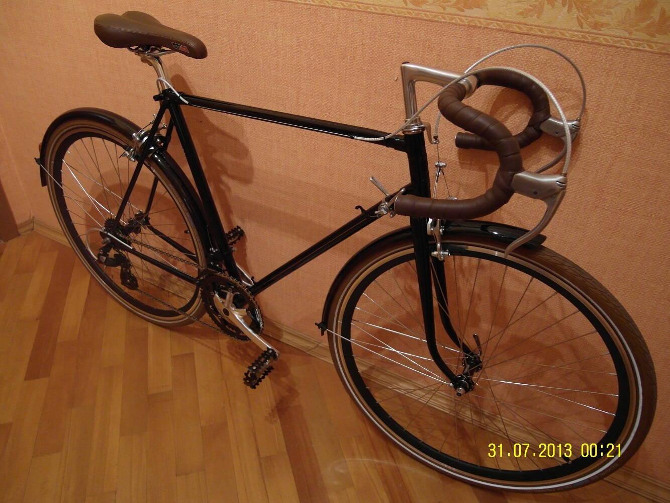 Не скажет. на самом деле спасибо за участие. Т.к В 555 2шт, то посмотрев и выслушав решил вилку с синего перекрасить в красный ( хорошо что родная красная краска осталась), а серебристую вилку отдать синему велосипеду. И будет красный, как стартово и задумывался. как на первой фото с крыльями. Вот только резина 25-ая не совсем для туринга, но ее оставлю как есть. А пока шкурю покрышку седла и каркас седла. Завтра на полимер решил каркас отвезти. Будет тоже красным.