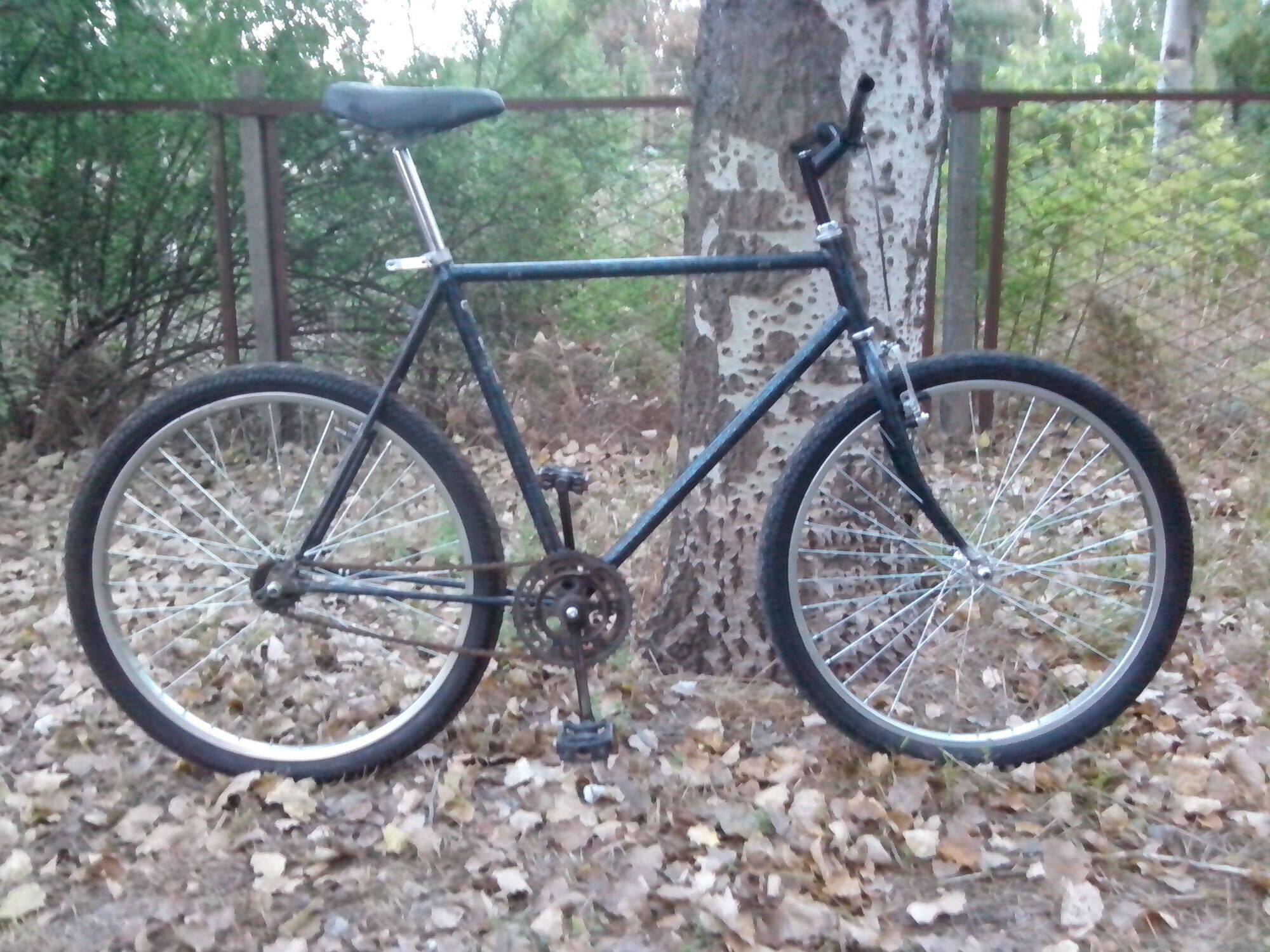 Дежурное седло тоже имеется с подседельным штырём. Руль - железная палка за 15 грн.