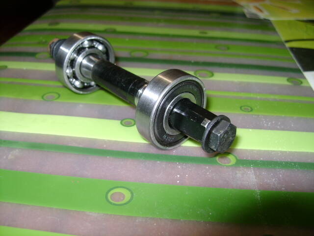 Нашел на рынке комплект. Вообще это очень распространенный бюджетный способ переделки каретки дорожника в почти вечную. Под клин продаются с подшипником 203 под Минск и 902 или 202 - под Украину. В комплекте на фотке стоят подшипники 903. Двести третие подшипники у меня в каретке стоят уже несколько лет: просто забил молотком и все. Но как только износилась передняя звездочка, велосипед превратился для меня в проблему (звездочки под спортивную цепь нигде нет). По причине отсутствия токаря, способного выточить переходник с резьбой на 35, пришлось опять смириться с таким примитивным вариантом. Стоимость оси с двумя подшипниками 40 грн. Если не получиться смонтировать - отпишусь.