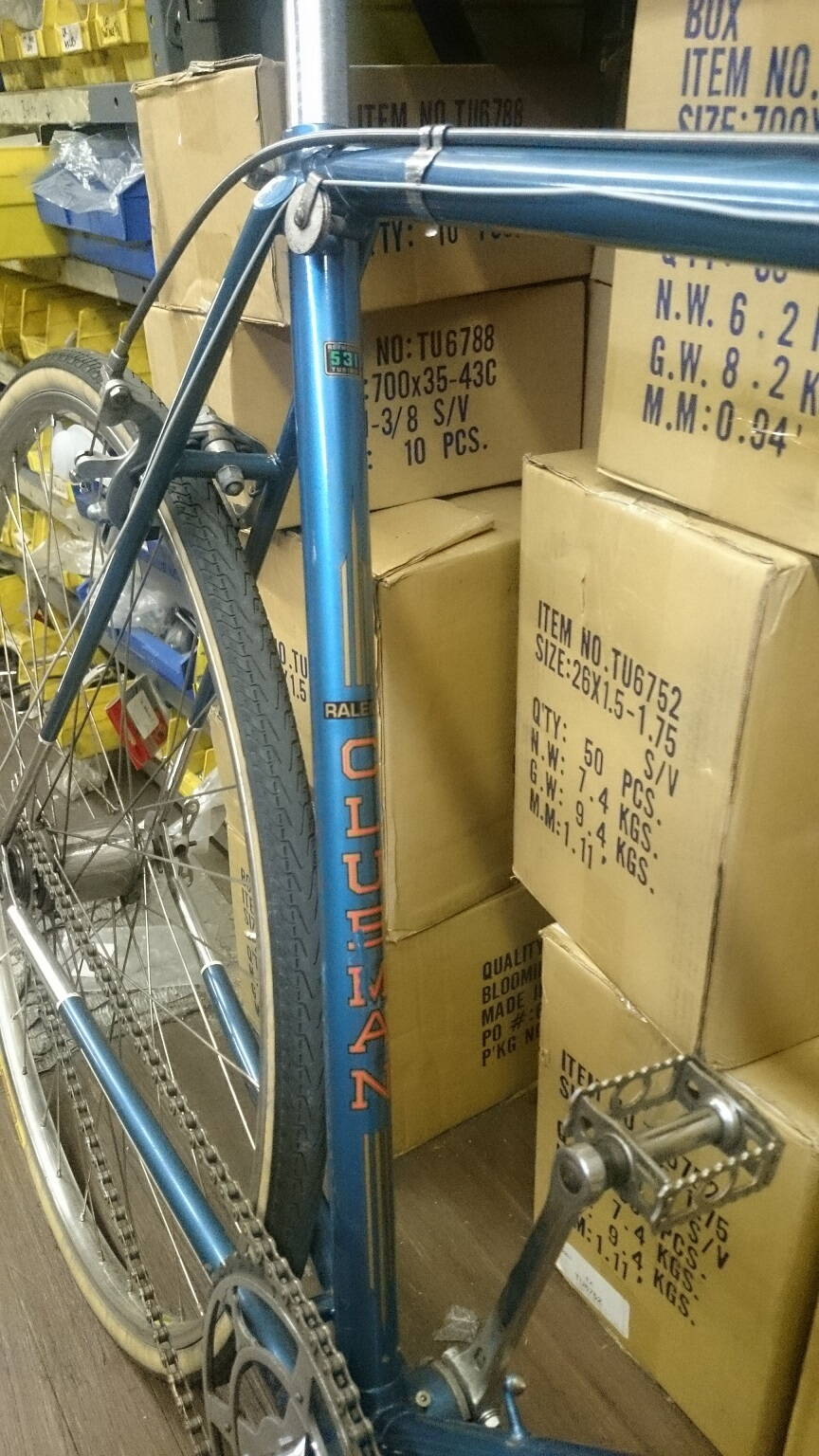 raleigh clubman 1948-50,вес сейчас полностью 25.6 паунда,пока так ,потом дополню. Из неоригинального- задний рим(данлоп хрен найдеш ,даже мне) , стермей арчер 4х скоростная втулка ,точно такая же но 62го года(оригинал хрен найдеш и от600 до 1000$) и ДжиБи ручки тормозные- это не большая проблема,ну и тросики ,резина,рубашки,все это у меня есть оригинальное но только для выставки,ездить на этом боже упаси.