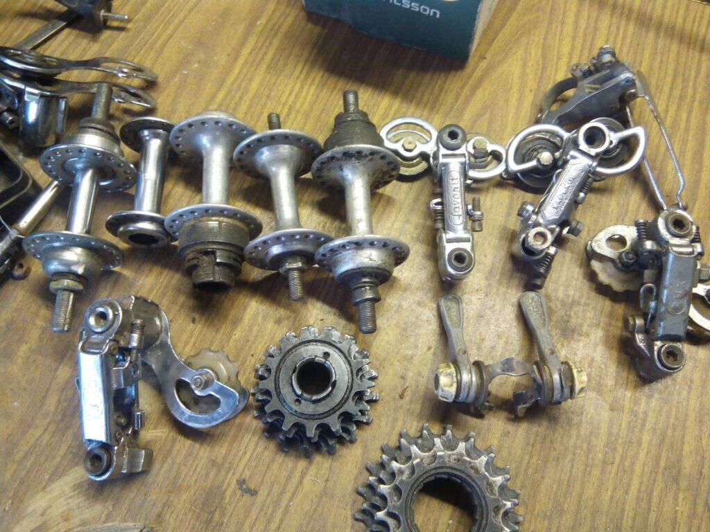 Наконец сегодня достал заднюю втулку. :yes: У предыдущего владельца серого СШ оказался комплект колес высокими флянцами на продажу. Когда он узнал что я восстанавливаю редкий СШ, он согласился обменять мои колеса с низким флянцем на его с высоким. Бесплатно. :smile: Также в нагрузку были отданы некоторые запчасти и новая велотрубка :Yahoo!: Теперь буду перебирать/полировать заднюю втулку.