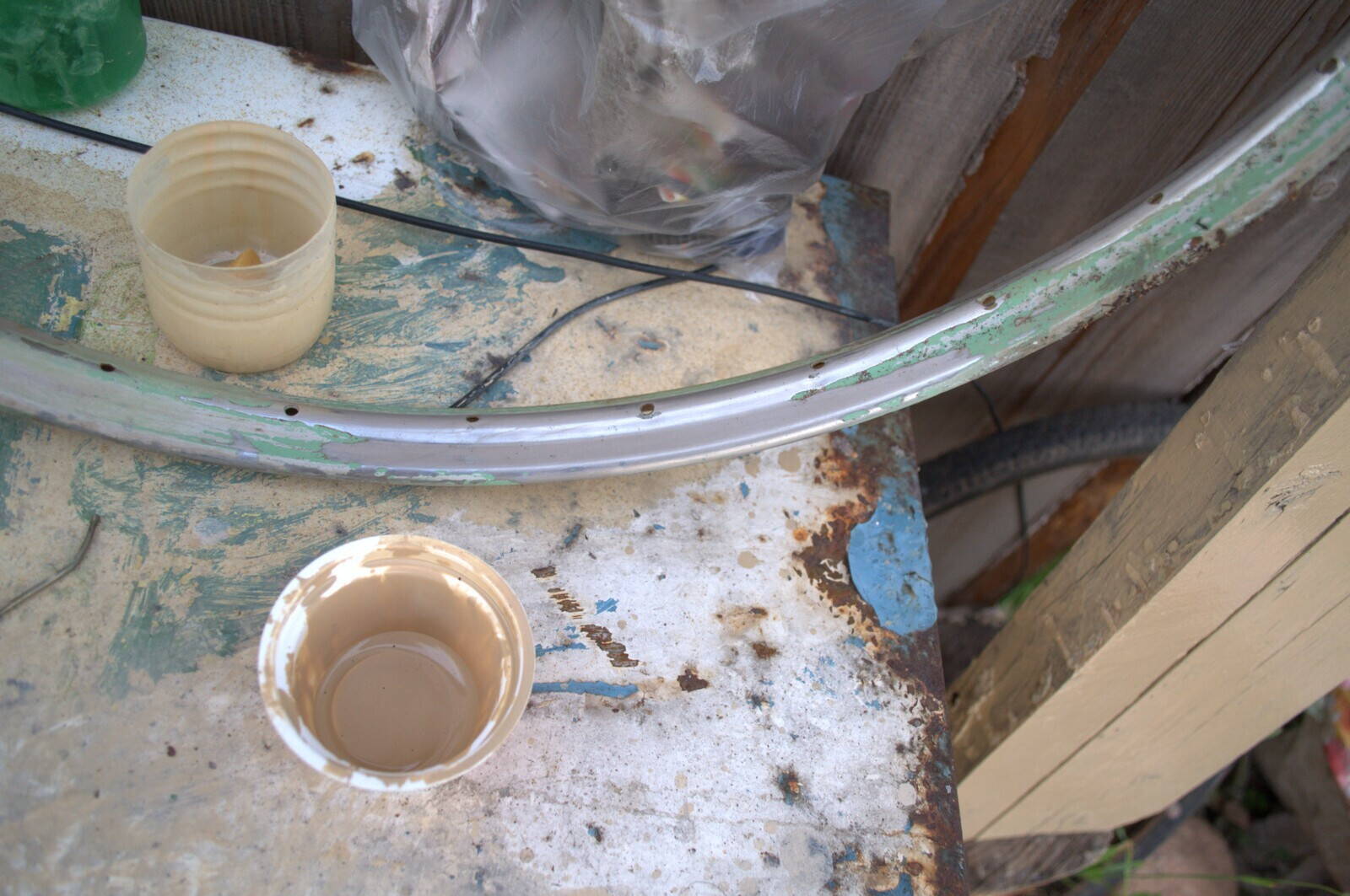 Некоторой неожиданностью для меня оказался факт что расправленная покрышка отказалась совмещаться со старыми отверстиями на каркасе