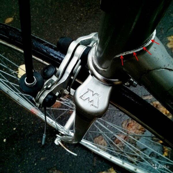 5) Померил толщину стенок трубы подседела ~ 1,2 мм. Переставил вынос - он подошел, но рулевой зажим пришлось тянуть немного сильнее чем положено (он был изначально рассчитан на 25,4 + износ от прежних рулей) У Мотобекана руль чуть меньшего диаметра - 24мм. Делать прокладки не стал. Решил стягивать вынос. Чуть нагревал и затягивал фиксирующий болт. Делал медленно, чтобы не сломать алюминий. Вынос при стягивании не лопнул (может это будет позже), но деформация в зажиме всё-таки видна. Вынос был в плохом состоянии с кучей ржавчины внутри и с ржавой фиксирующей гайкой. но всё отмылось и отполировалось С новым выносом - велик боевой вид приобретает...