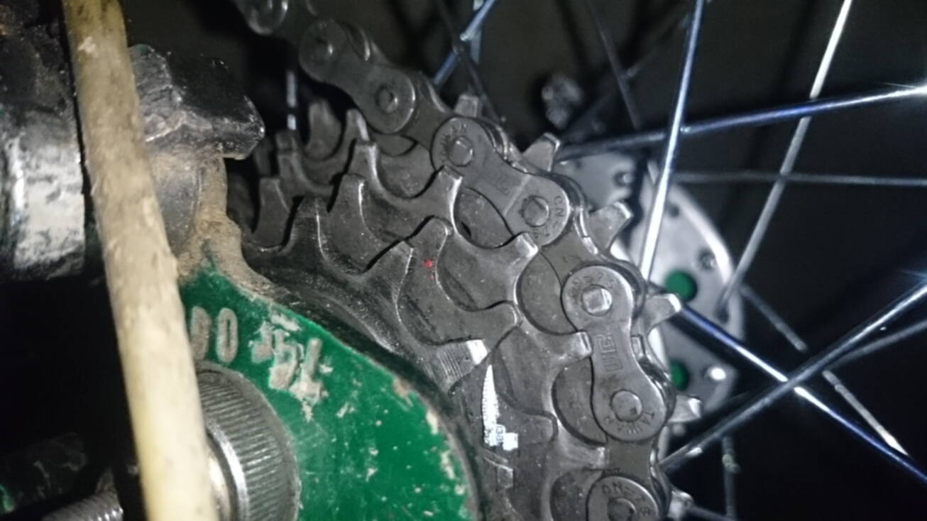 У меня было такое же, но только на самой малой звезде. Цепь КМС Z33 новая, пятерик новый.