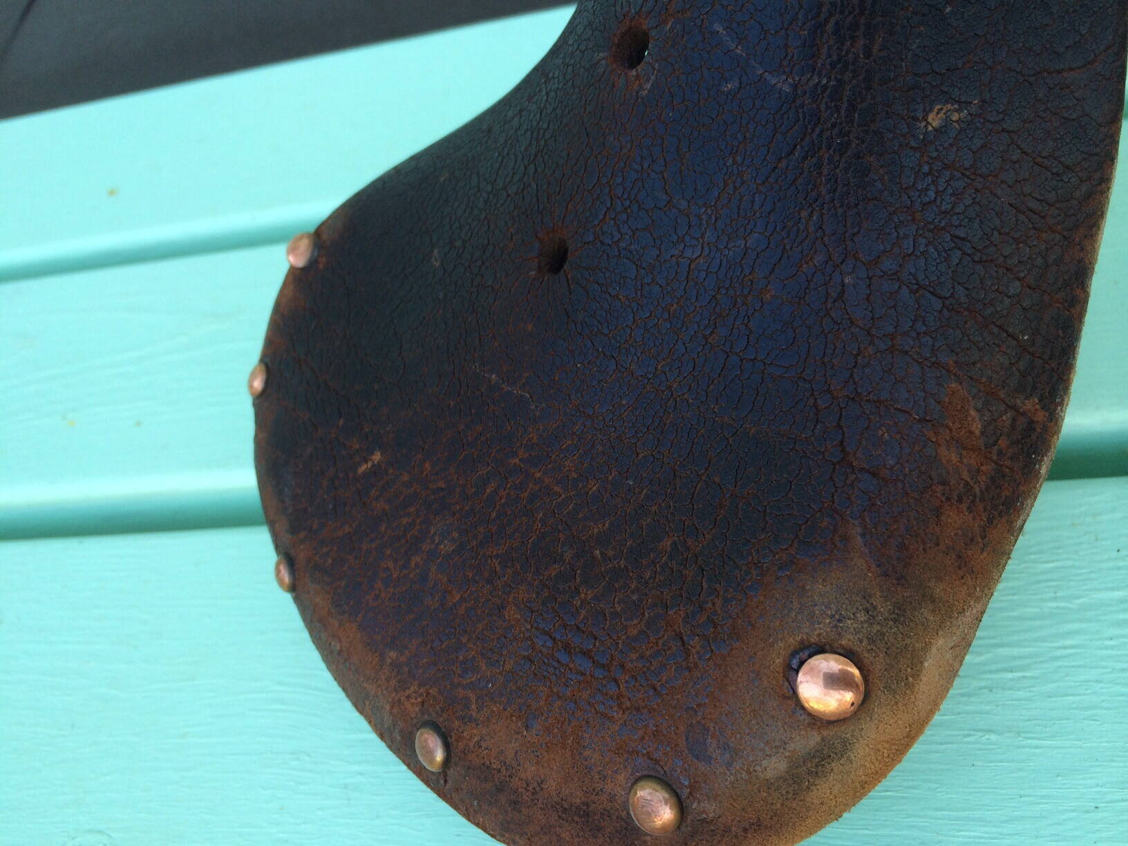 Для В-555 такое седло, внешне не очень, надо будет реставрировать, причем это именно то седло, что стояло на этом велосипеде. Заклепки медные.
