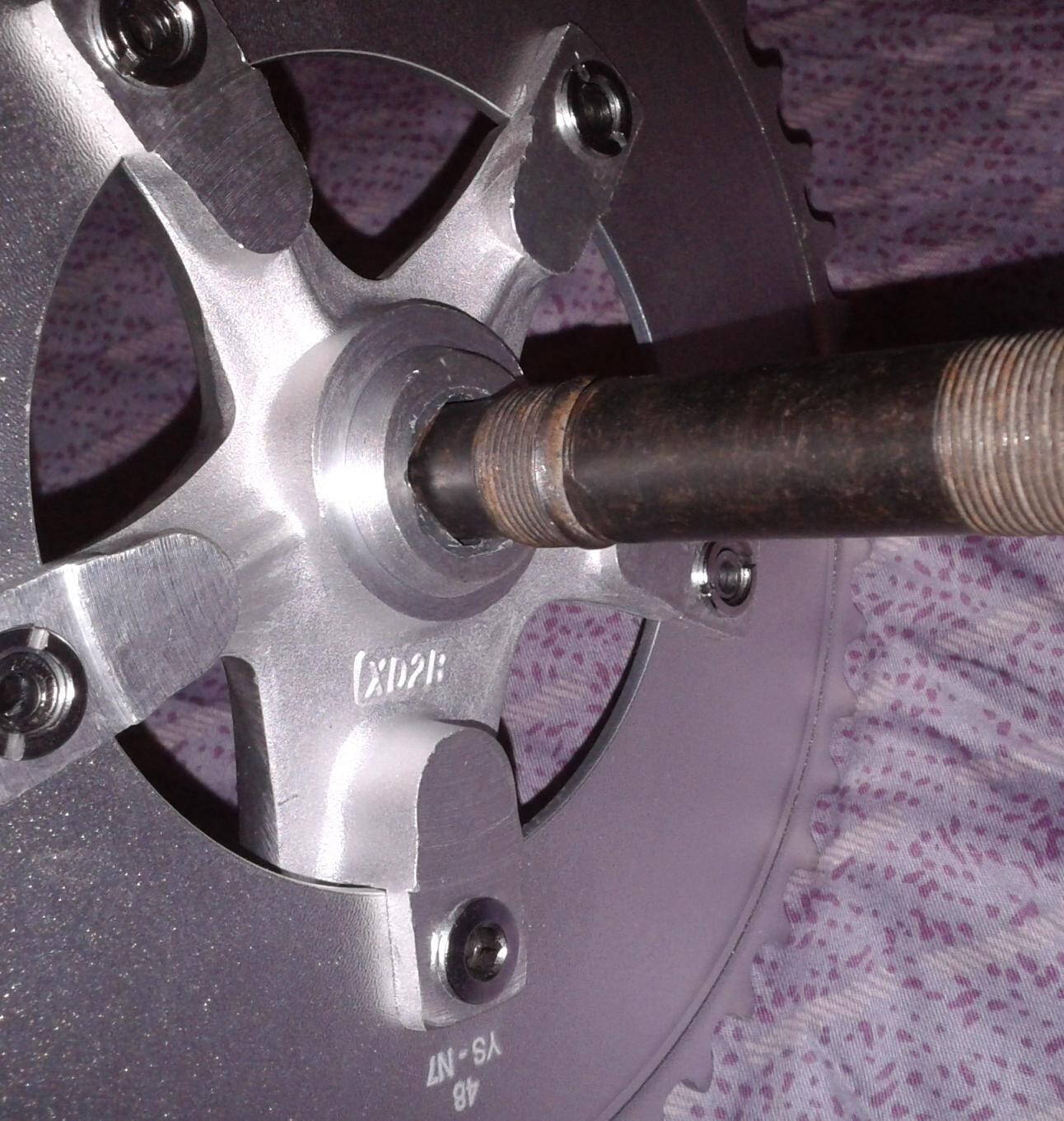 Второй вариант: Проставка алюминиевая находится слева для того, чтобы центр между фланцами втулки был по центру между дропаутами