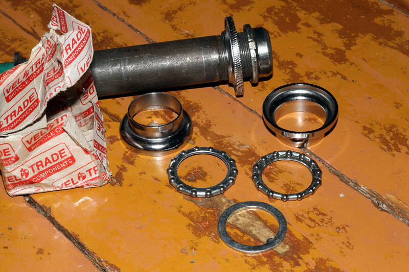 Еще взял у мужичка пару проставок с резьбой разной толщины. Они навинчиваются после верхнего конуса, перед шайбой с усом. Как раз для случаев, когда вилка длинновата. Оказалось, что зря взял. Резьба оказалась импортной дюймовой.