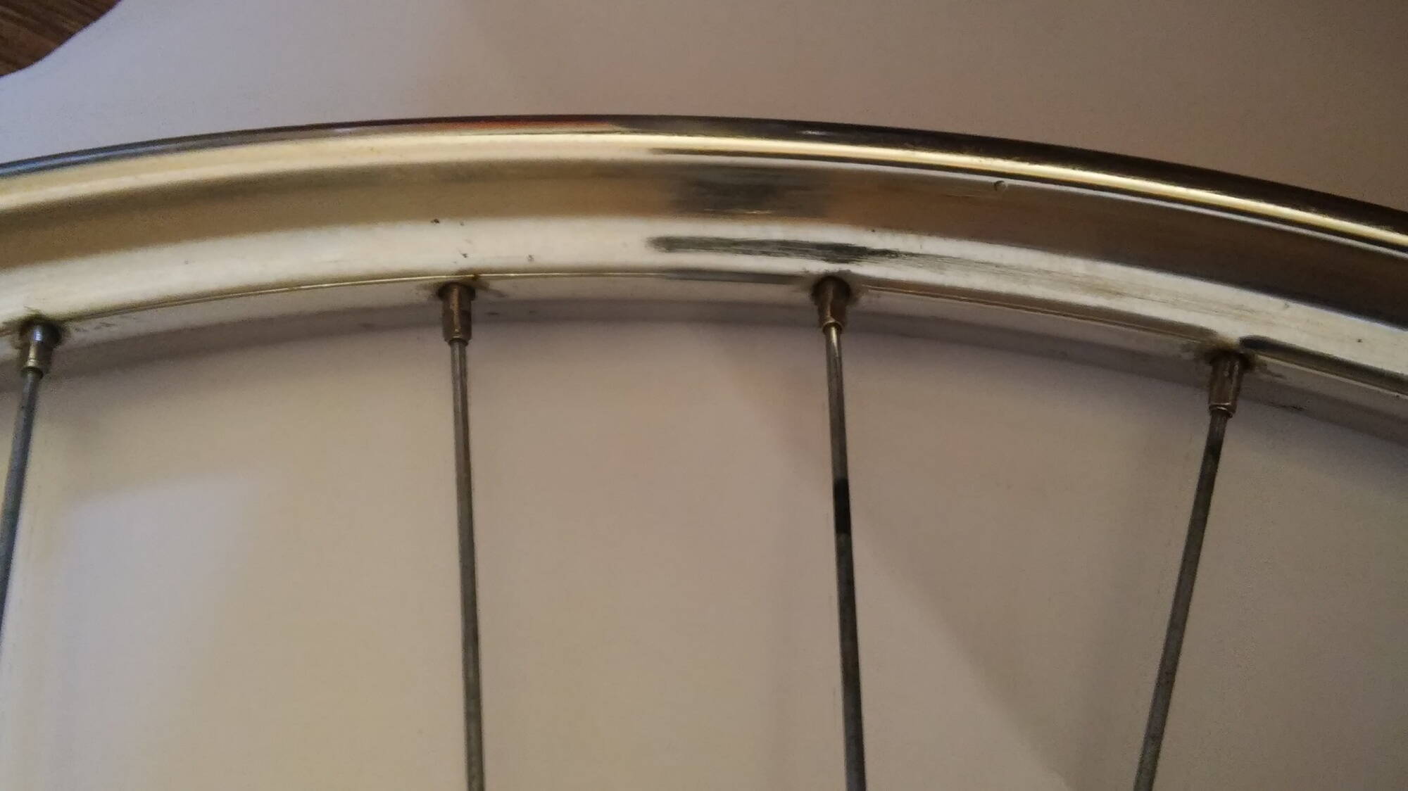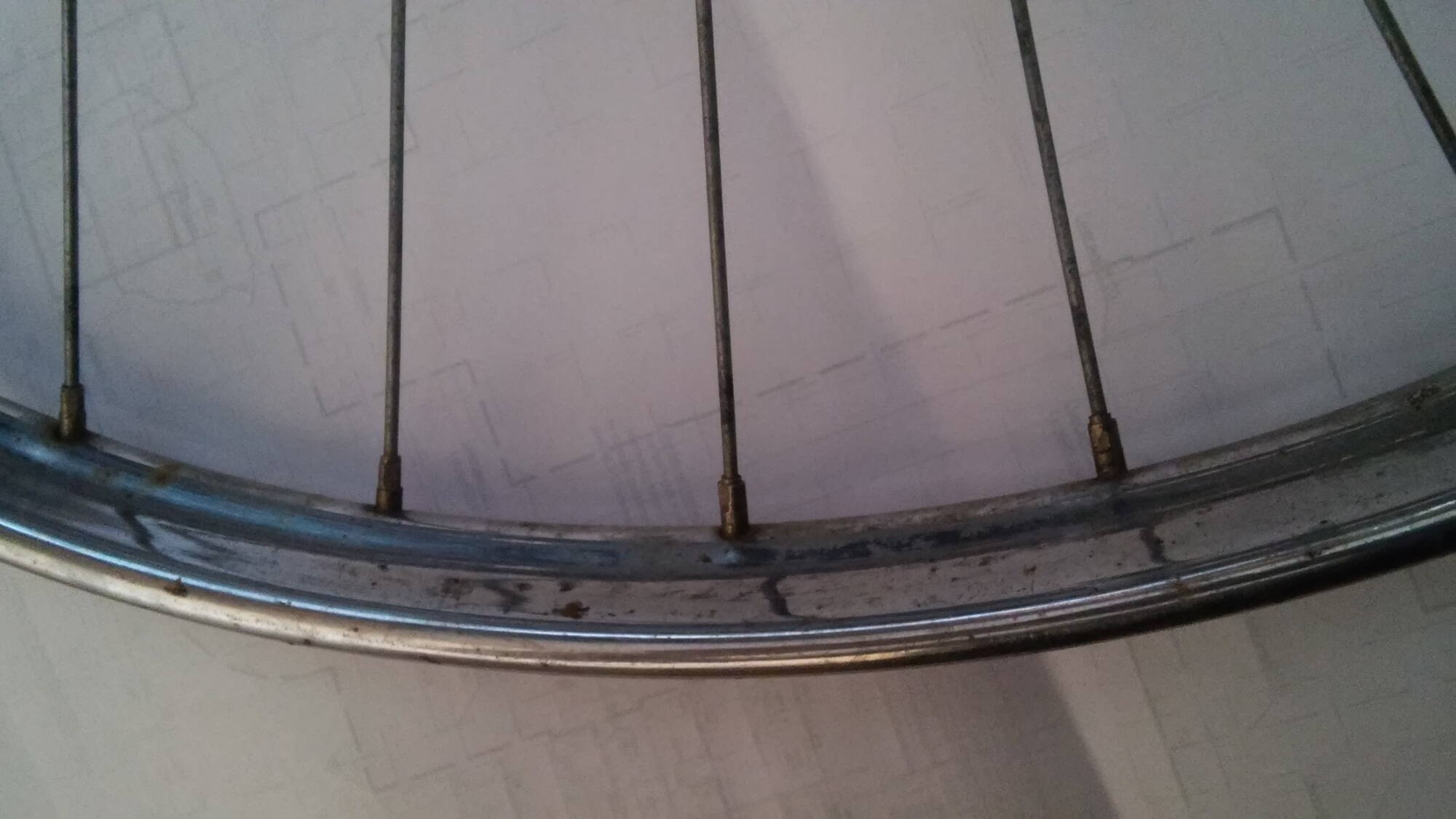 Итак, друзья, далее по велу. Колесо было таким как на фото. Хром вообще то неплох, но какие-то гадости на нем имелись.