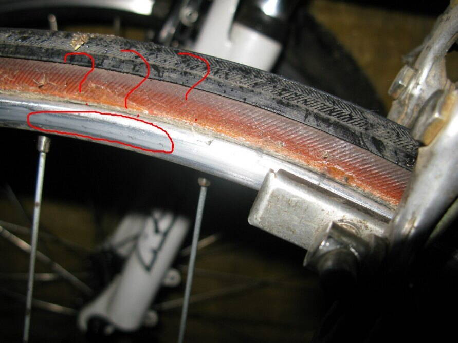 б)если обод с тормозной дорожкой, то площадь равна внешней поверхности+донья дорожек=площадь обода без тормозных дорожек+боковая поверхность. В случае слишком твердой колодки площадь будет небольшой.