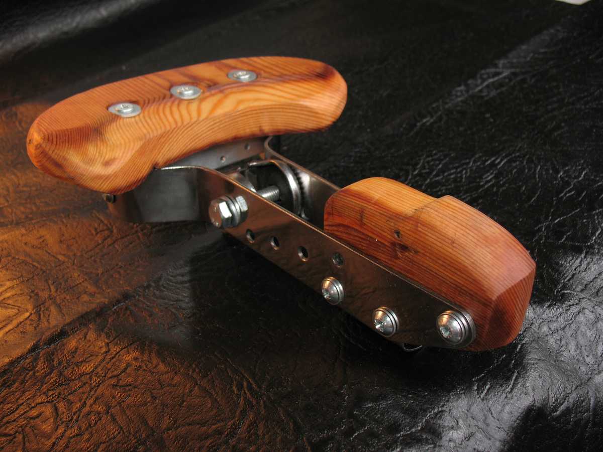 Изначально чёткого плана не было, я подыскивал какую-нибудь толстую проволоку чтоб из неё гнуть обычную рамку. Но вместо проволоки нашлись две полоски нержавейки. Поглядел я на них и решил что на рельсах будет даже проще. Деревяшки выпилены лобзиком из куска доски, который опять же нашёлся на балконе. Сосновой судя по смолистости и запаху. Обточены наждачным кругом на дрели. Точится легко и быстро, главное слишком много не отхватить. И сзади перемычка из оцинкованого уголка.