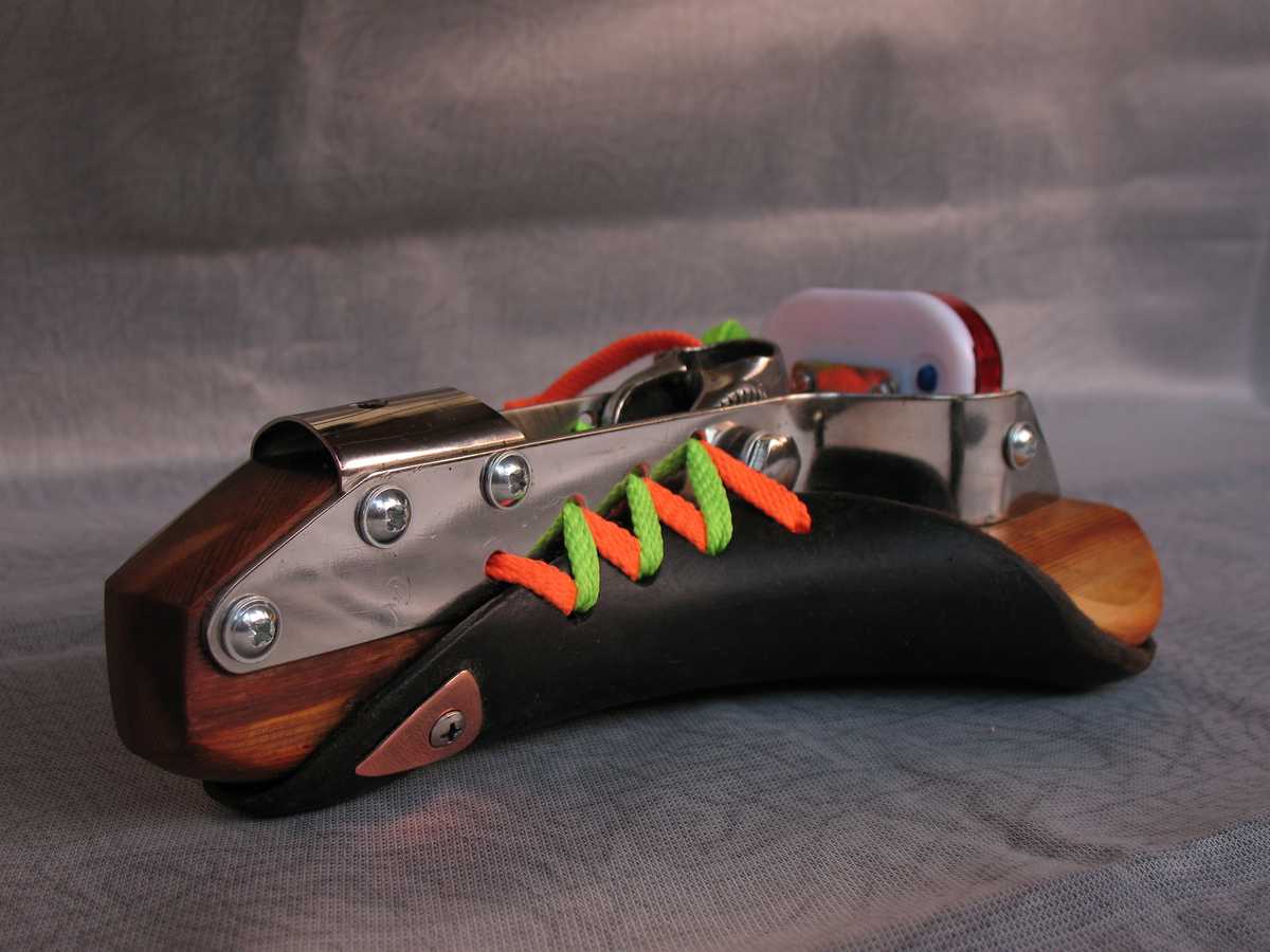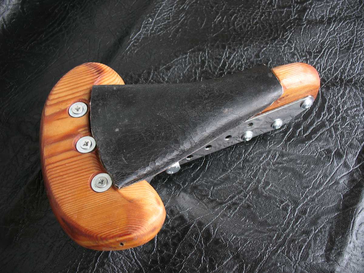 Оно даже стянутое шнурком проминалось. И, по идее деревяшка не должна быть под костями. Там на первой картинке видно - ширина задника, на который опирается кожа, не намного больше чем стандартного стального. А дальше идёт ступенька и там уже чепрак должен висеть над деревяшкой. Когда сушился его обтянуло, но какой-то просвет там ещё остаётся и он немного пружинит всё-таки.
