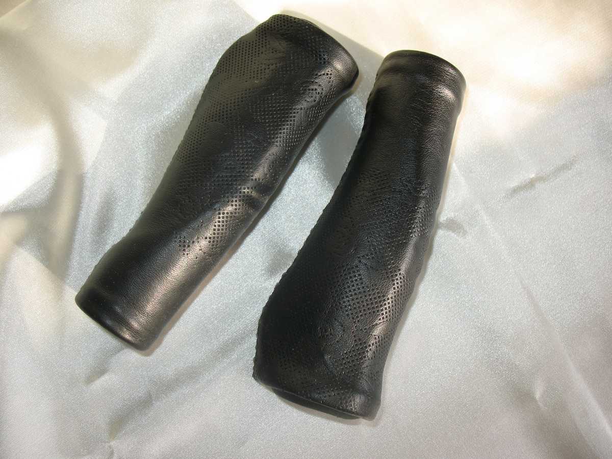 А это как раз делалось не только и не столько для красоты, а сугубо с практическими целями - чтоб было комфортно ездить без перчаток. На гладких резиновых грипсах руки потеют и скользят настолько что ладонь может и соскользнуть вообще, кроме того грязь качается катышками. Неприятно. С кожаными такого не происходит и грязь не качается и руки хоть и потеют но почти не скользят. С плетёной кожей ещё лучше, но оплетать такие было бы сложно, лениво, да и эта кожа перфорированная.