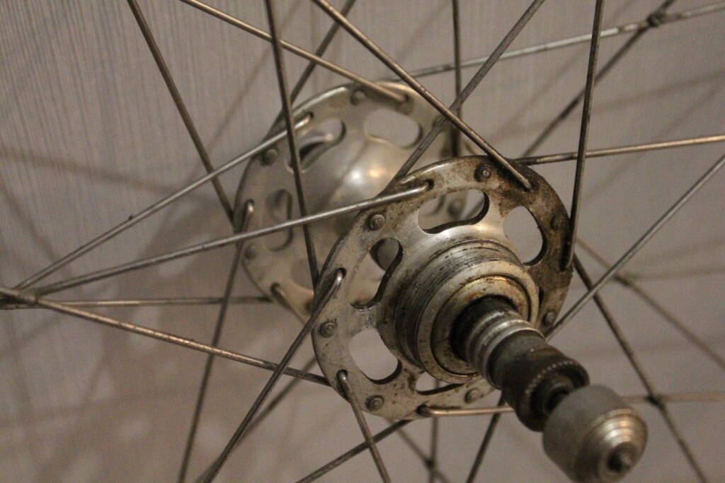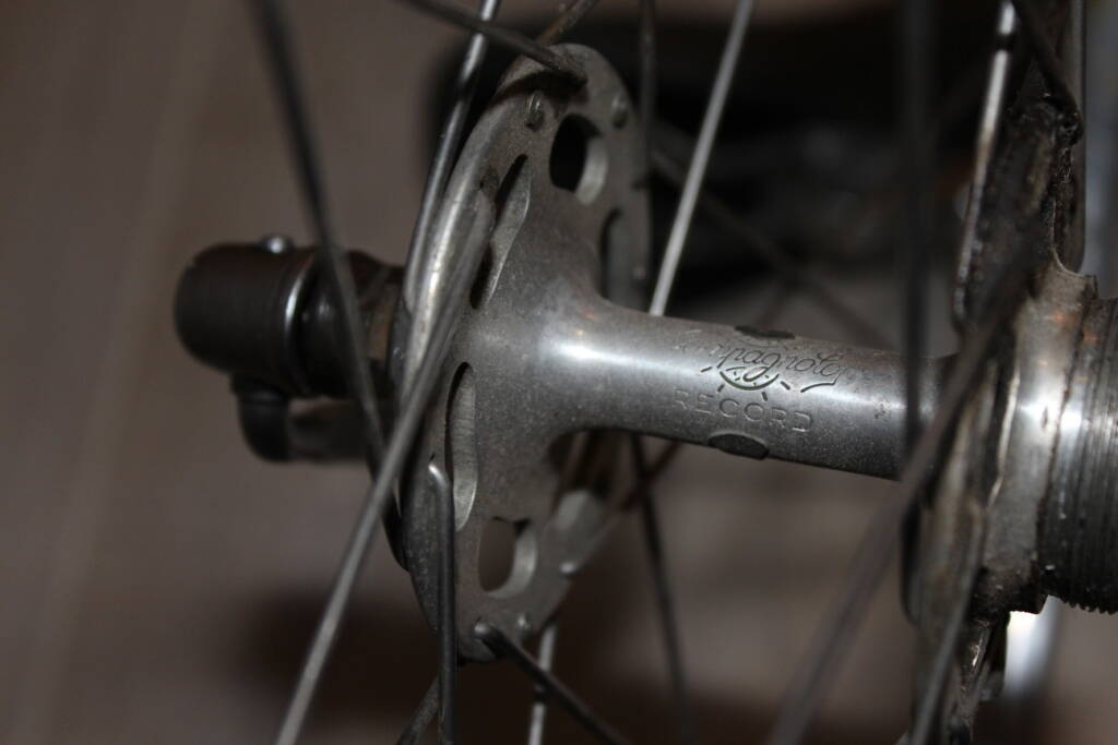 А вот фото камповских деталей, марку седла мы определили, марка подседела неизвестна. С колес беру только втулки на 28 спиц,так как обода в плохом состоянии.Прикольно, в этих колесах спаянны спицы.