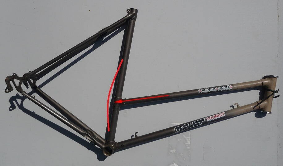 Из-за этого, на заводе в таких рамах применяют усиленную подседельную трубу - с увеличенной толщиной стенок. Причём и это не всегда помогает - попадаются и заводские рамы, погнутые в этом месте. А тут труба не усилена...
