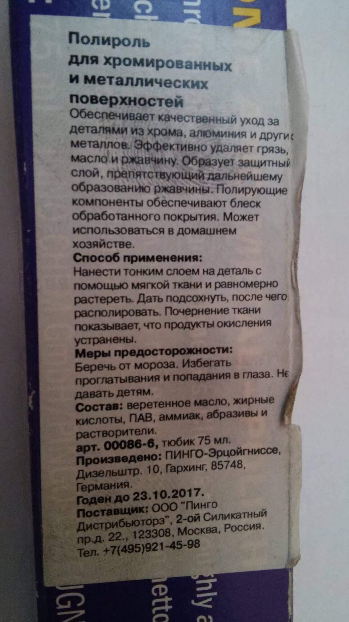 причем паста в тюбике чрезвычайно эффективна и нежно работает с хромом - не царапает и не портит никак + защищает алюминий (насос уже год как не тускнеет, отполированный ей)
