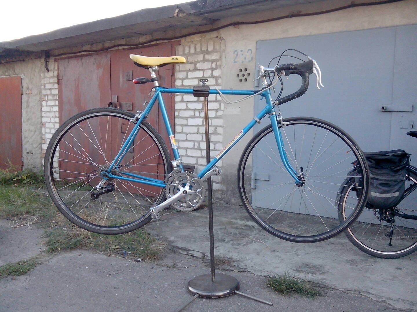 Решил приподнять тему. Собрал себе нищебродскую велостойку и быстренько так на ней для опыта собрал промежуточную вариацию своего СШ из того что было на тот момент. Немножко покатался и начал разбирать всё. Стойку для чистовой обработки и покраски, велик и собирался для покататься на несколько дней.