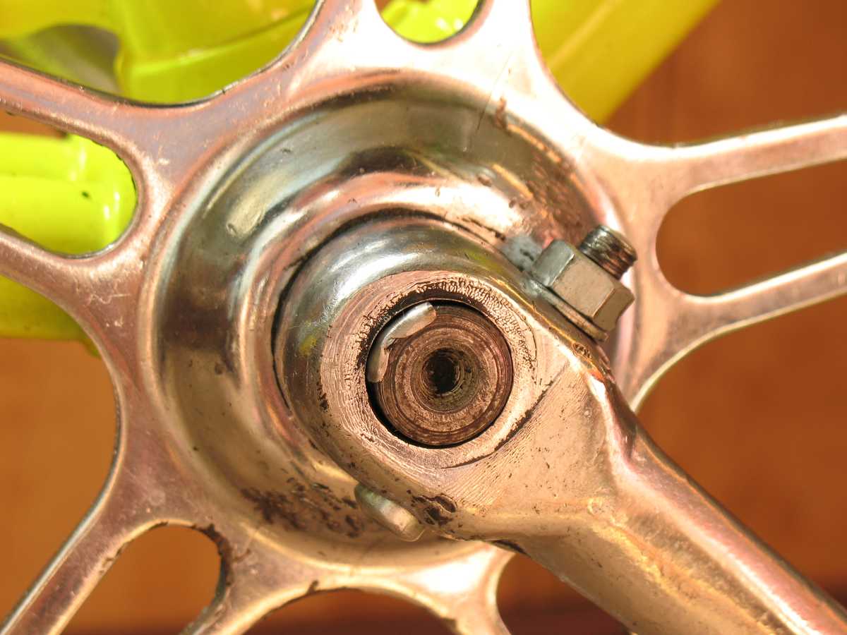 Снять этот клохоз , и поставить специальную толстую гайку с зубчиками, и ось никуда не денется.
