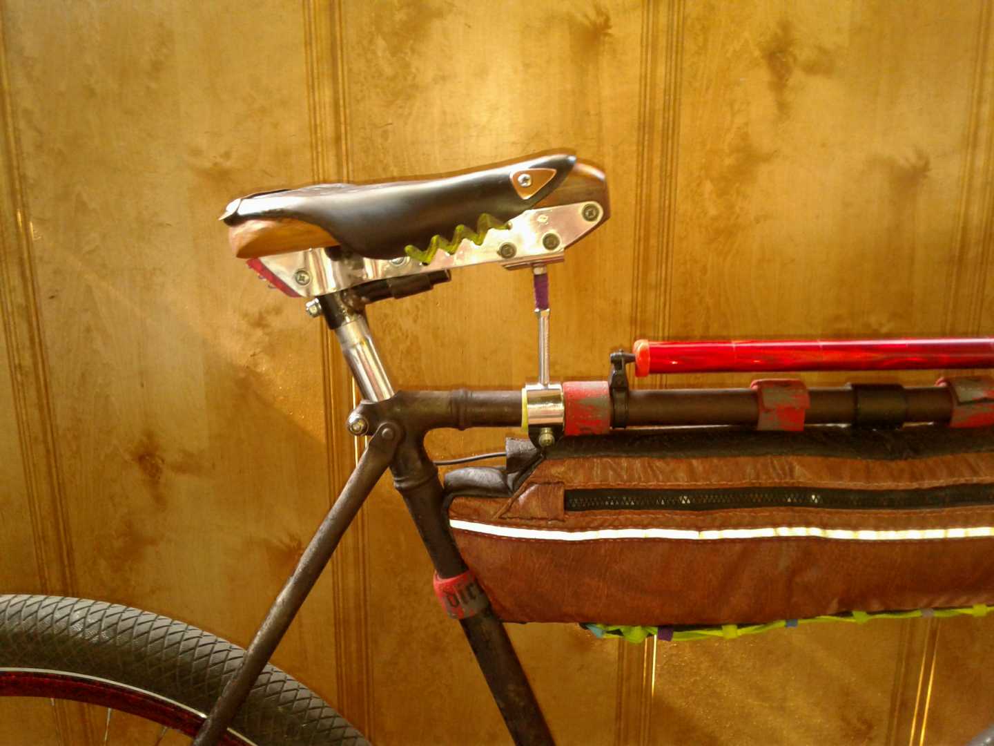 Перепрошую, але якщо не доводилось бачити таке рішення раніше, це зовсім не привід ставитися до нього зверхнє та зневажливо. Ця технологія (саме технологія :wink: ) з минулого дозволяла регулювати положення сідла по довжині, бо далеко не всі конструкції седел того часу мали замок, що здатен рухатися по рейках каркасу.