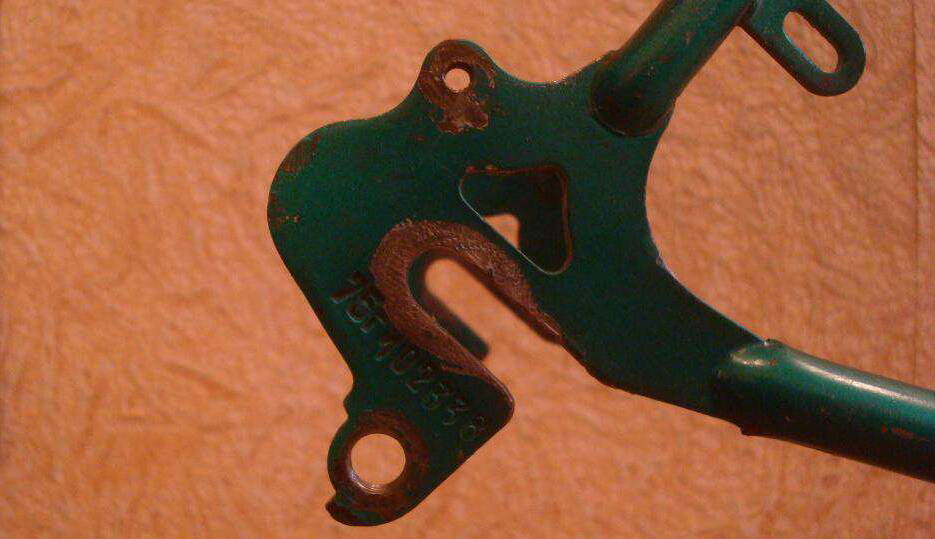 На первых 3 фотках видна особенность рамы раннего 541, не вписывающаяся в Вашу теорию: на веле использовался накладной переключатель "телескоп", а не "паралеллограм". На дропе нет "сопли" (ушка крепления переключателя), а стало-быть обсуждаемая нами рама явно не вписывается в стандарт 541 по этому параметру. В тоже время в 1958г. с соплей шли только В-55 и В-551, но дроп явно другой формы - что меня угнетает, не позволяет его идентифицировать :cry: .