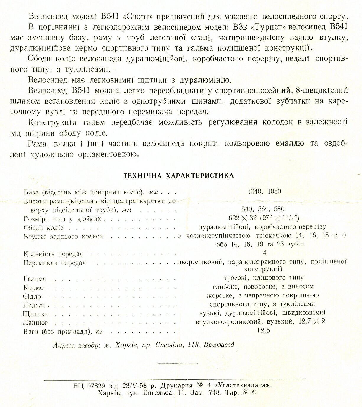 То, что вел уникальный – не подвергаю ни малейшему сомнению! :yes: Но меня, если честно, немного смущает, доклеенная декаль (явно не родная, ИМХО) «541» на подсидельной раме. :unknown: Но с другой стороны, есть мануал 1958 года, о котором Вы говорили. Может это была первая серия, поменяли в последний момент название или номер (ведь не секрет, что ранний В-54-1 достаточно много взял от В-55-1 «Чемпиона»), а потом пошла 2-я серия в новом декоре!?!? :D