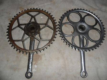 Визуально, да и по опыту, старинная солиднее и точнее сделана, ровнее и красивше :) Обидно, если она раздолбана. Шатуны на дорожники, вроде, одинаковой длины (170) делали тогда, и сейчас продолжают. На дамские, иногда поменьше бывали, правда - 158, вроде.