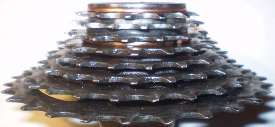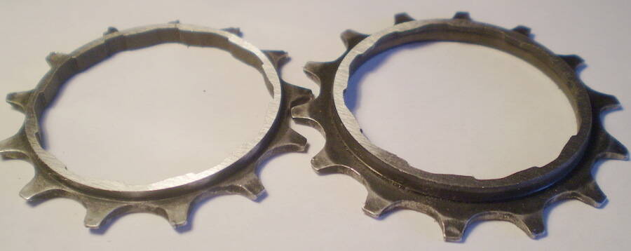8-ю звезду (самую малую) стачивал зря. Зубья у неё толстые и мешают работе цепи на 7-й звезде.
