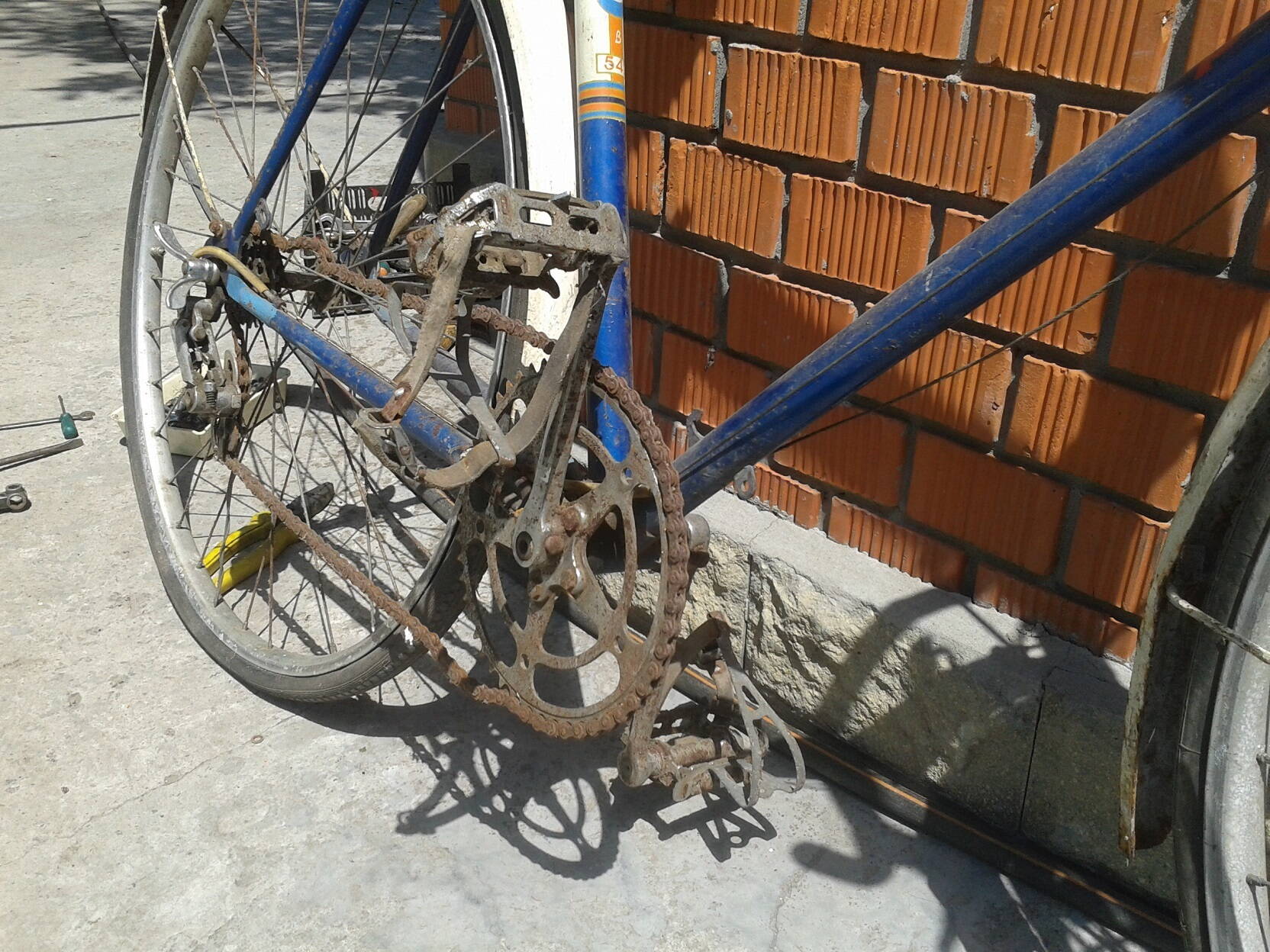 Менять нужно все кроме рамы и руля. Еще систему с педалями на некоторое время можно оставить, если клинья живые. Только щеточкой пройтись. Судя по окислам на алюминиевых деталях - даже седло восстановлению не подлежит. Хотя на фото смотрится нормально. Попробуйте отломать от него кусок пальцами - если отломается - в мусор (или натянуть новую кожу на ту же рамку). Если нет - можно попытаться пропитать маслом.