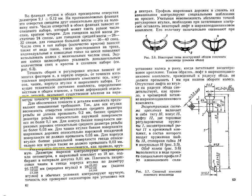 В картинке что выше про люфт тоже сказано. Что люфт должен быть до 1мм при полном обороте колеса! Такой люфт руками можно прощупать? Или все что прощупывается руками это уже более 1мм!? К чему спрашиваю, в соседних темах читал что люфта не должно быть вобще, но возможно ветка была про МТБ и всякие импортные втулки То если верить книге, люфт надо оставлять? |