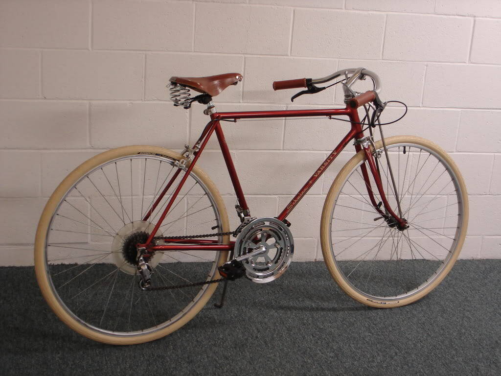 Тоже думаю что это типа нашего туриста, на нем еще багажник стоял. Обода, да одинарные, и по ходу стальные, причем заднее с огромной восьмеркой. А менять не рабочее немецкое на рабочее китайское, в каретке подшипников уже не осталось, люфт и крутится с заеданиями, менять на квадрат-новые шатуны, передний переклюк тоже сломан ну и т.д.
