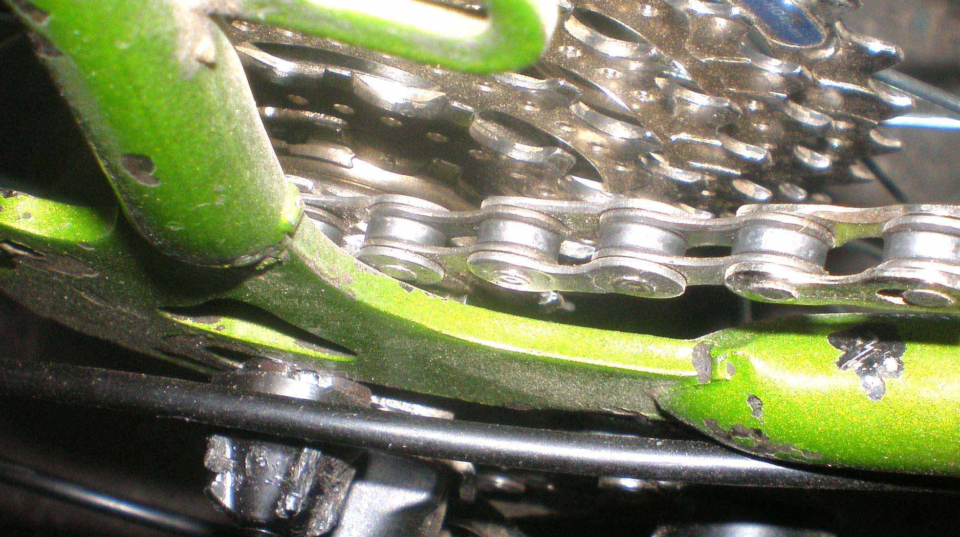 как раз может из-за того, что перья стоят врастопырку, так что - гни дропауты (оба) а потом по ситуации и с цепью - может да, шайбочку... :smile: