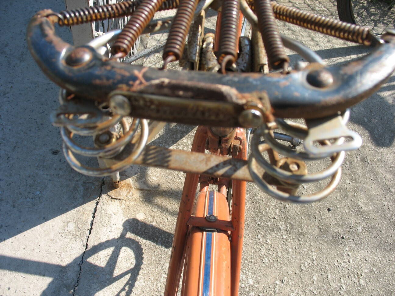Только этот действительно раритет, переднего тормоза я уже не помню, и верхняя труба на дамках была уже ровная.