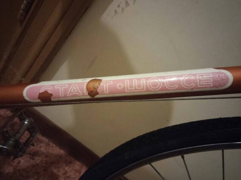 Всем привет из холодного Питера! После долгих изучений ветки с олимпийками и других, посвященных различным необычным версиям С-Ш, твердо решил приобрести необычный велосипед. В прошлом году собрал сингл на базе зеленого С-Ш 89 года, осенью его продал. Приценивался к Кремам и Линусам, но потом они дернули вверх и теперь их недостать) А потом понял что опять хочу не просто велосипед, а еще и хобби, объект починок, обсуждений и головоломки)После поисков,выжидания купил Старт-Шоссе Олимпийский, на петухе 80-47. Состояние видно на фото, по обвесу в хорошем состоянии, но на туристовских ободах, серьезно покоцанной краской и облупившимися деколями.