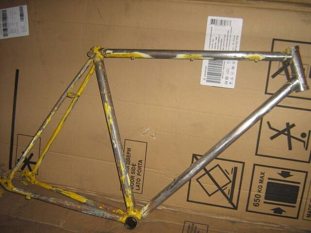 Купил у тренера вот такую раму. на вид и ощупь - крепкая, вроде хромоль, рост 540мм, первоначально планировал сделать на ней вел для шоссе, но впоследствии отказался, т,к ее надо было красить, сейчас она покрашена
