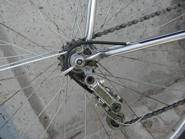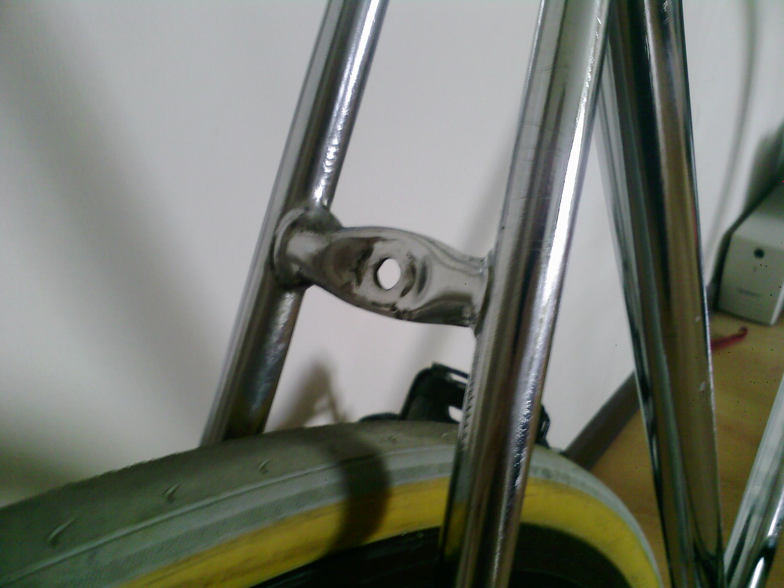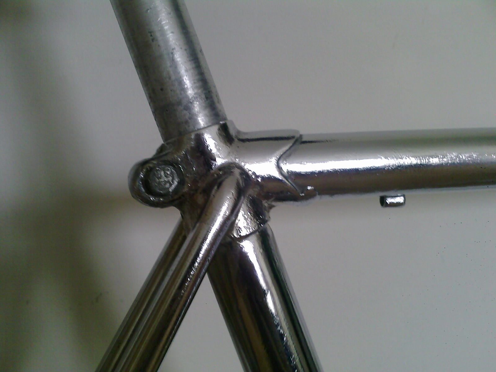 нашел на одном из форумов фотографию очень похожей рамы. абсолютно такие же дропауты и узлы, в родном хроме. хозяин не знает названия, но называет примерную дату производства — 1957-1959. т.е. до по идее это раньше, чем СШ. кто что скажет?
