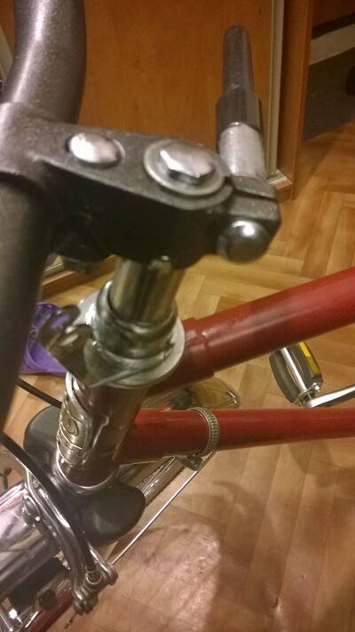 Я полностью разбирал конструкцию перед покраской. Т.к. толком что внутри не представлял - по рекомендации отца - для снятие трубы руля довольно сильно лупил по косому клину (вначале сверху, потом снизу - от колеса), возможно этим его намертво и зафиксировал в штоке вилки под неправильным углом. Хотя руль после этого снялся легко и непринужденно.